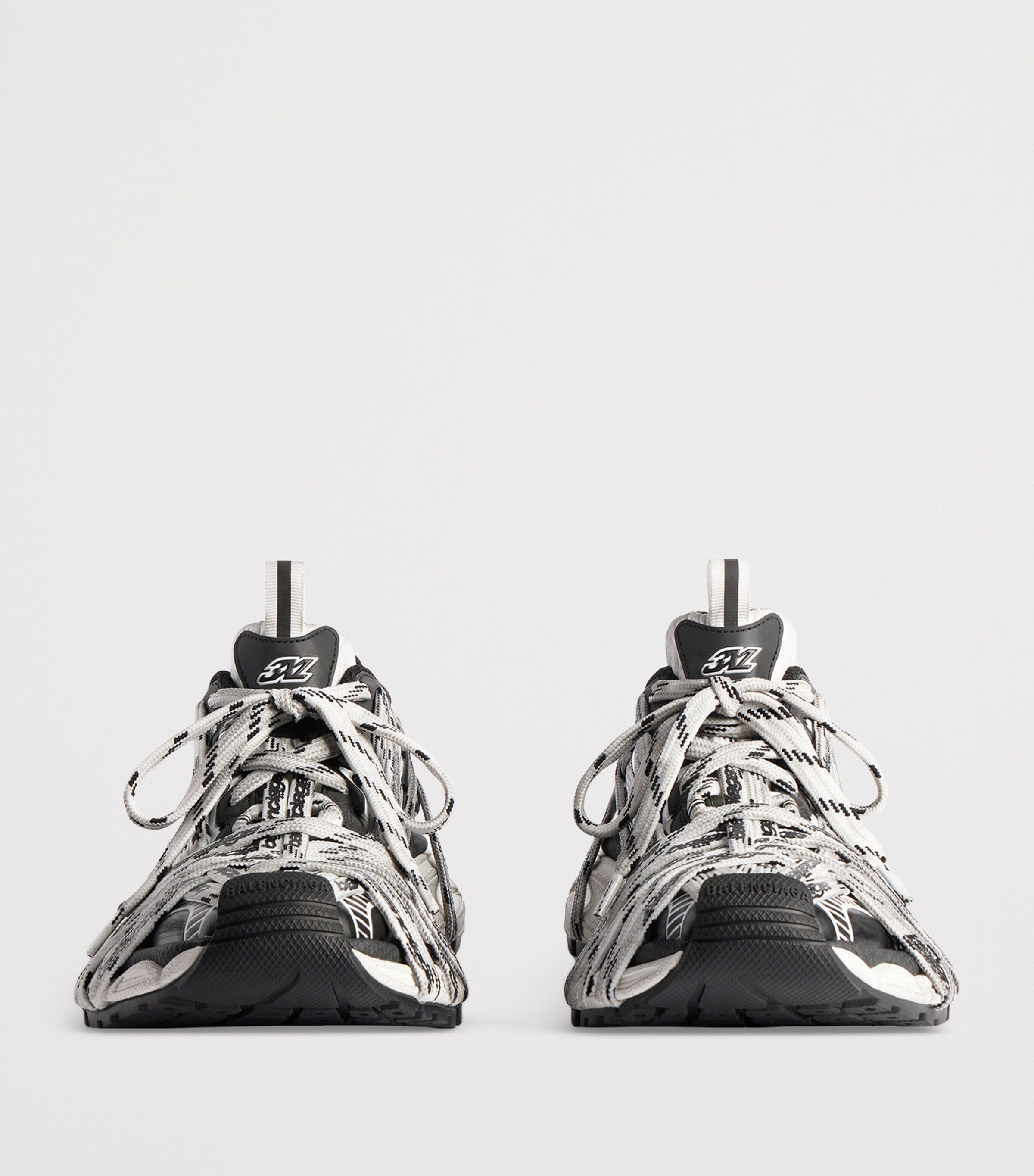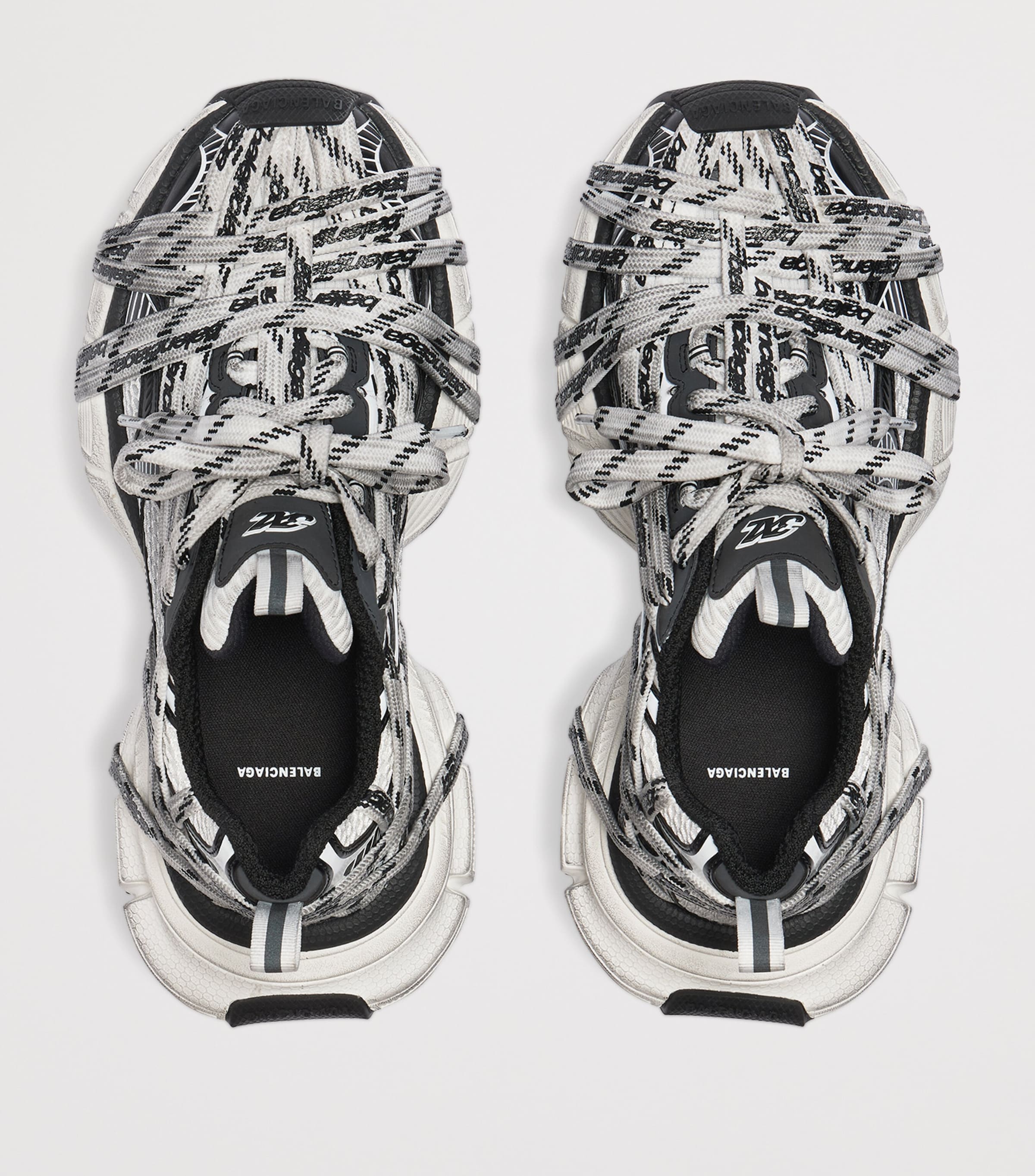يتجلى نهج بالنسياغا الطليعي في عالم الموضة بوضوح في حذاء 3XL Extreme Lace الرياضي، الذي يكسر قواعد الأحذية بتصميمه الممزق المتعمد. يتميز هذا الحذاء بتفاصيل أربطة الأحذية التي تلتف حول الجزء العلوي بالكامل بتأثير يشبه شبكة العنكبوت. مستوحى من أحذية الجري في الألفية الجديدة، يتميز هذا الحذاء بنعل مرتفع وألواح شبكية تزيد من قيمته كقطعة أساسية لا غنى عنها.
