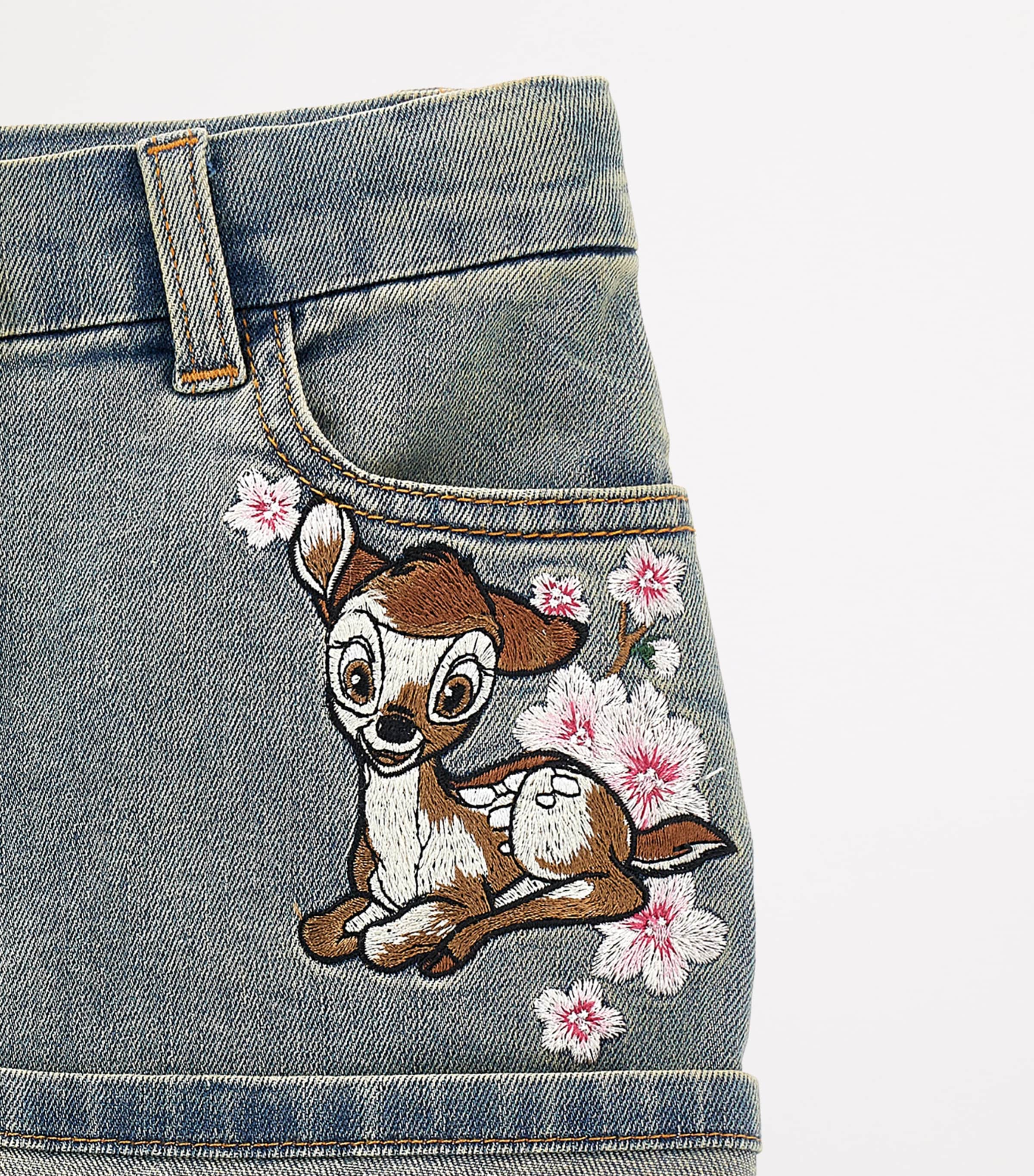 Monnalisa understands that your little one doesn’t want to wear minimalist clothing, preferring instead pieces that spark excitement. This mini skirt draws inspiration from the dreamlike world of Disney, with Bambi delicately embroidered in the corner – a fawn friend curled up and surrounded by flower blossoms.