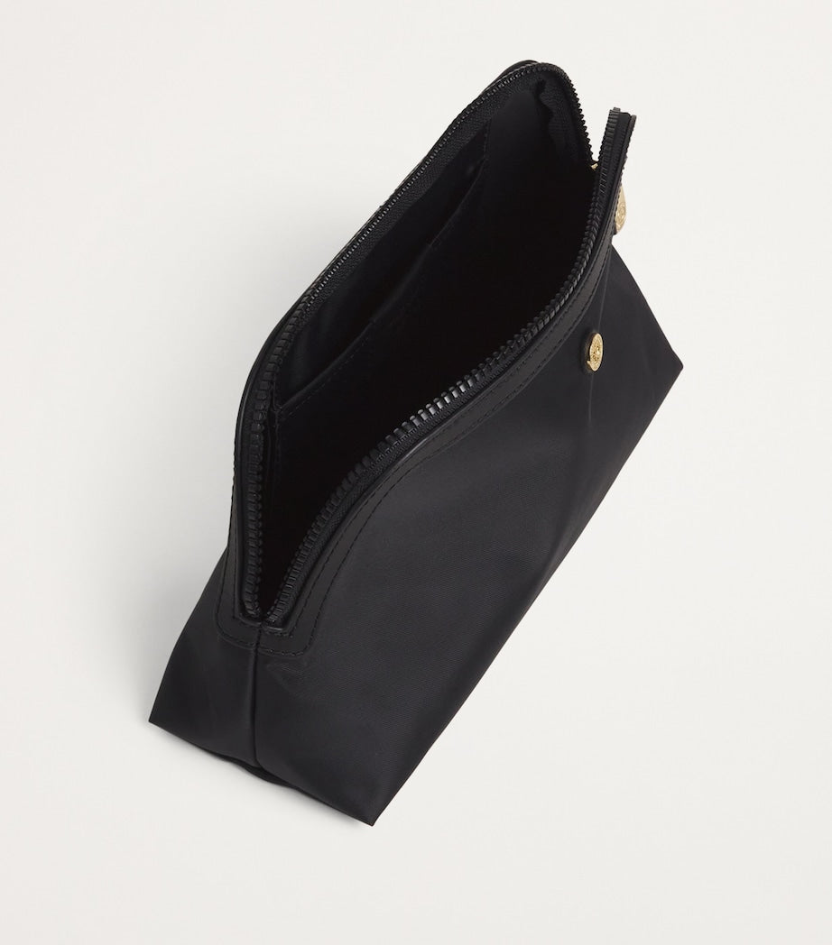 Harrods provides a sleek solution for carrying your cosmetics with this wash bag. Detailed with classic leather trims and gold-tone ‘H’ hardware, the recycled nylon design is slim, sophisticated and durable – three qualities that make it a firm favourite for your travels.
