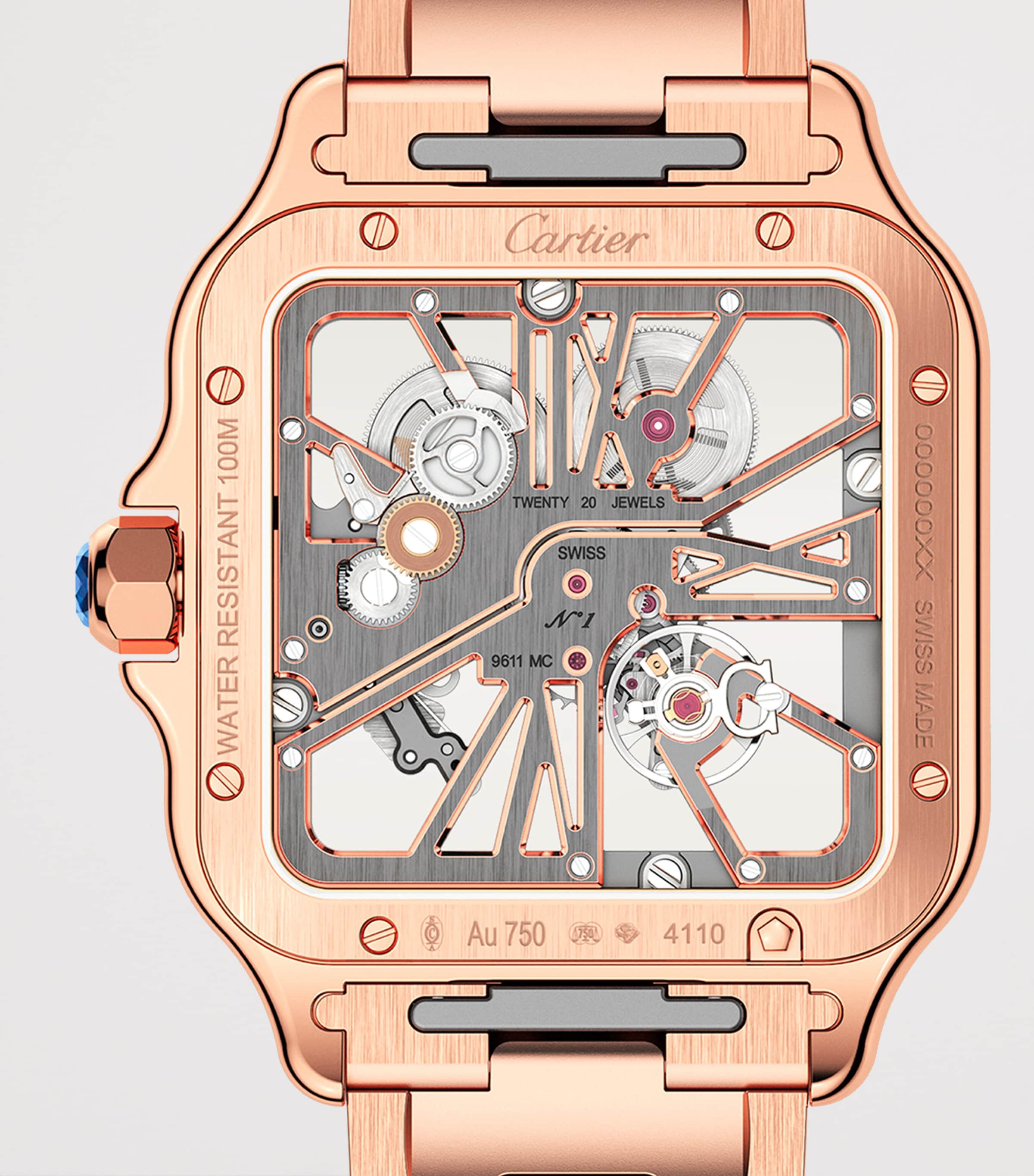 Large Rose Gold Santos de Skeleton Watch 28mm