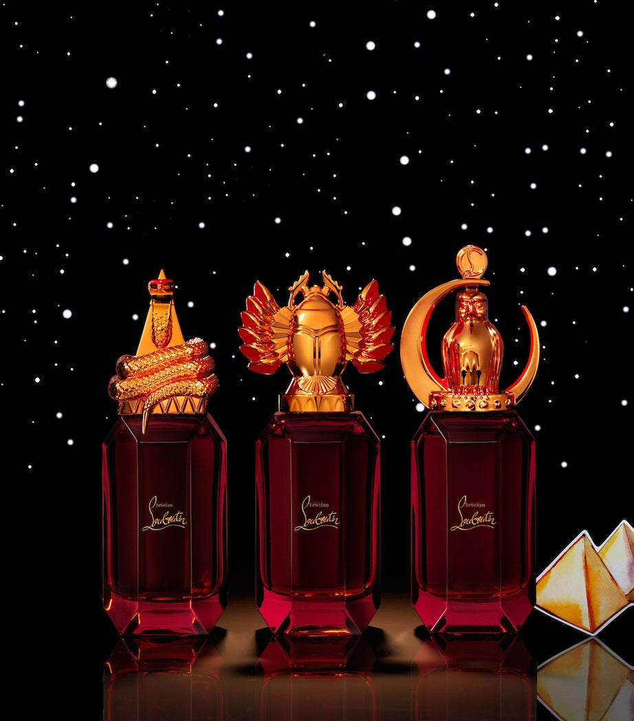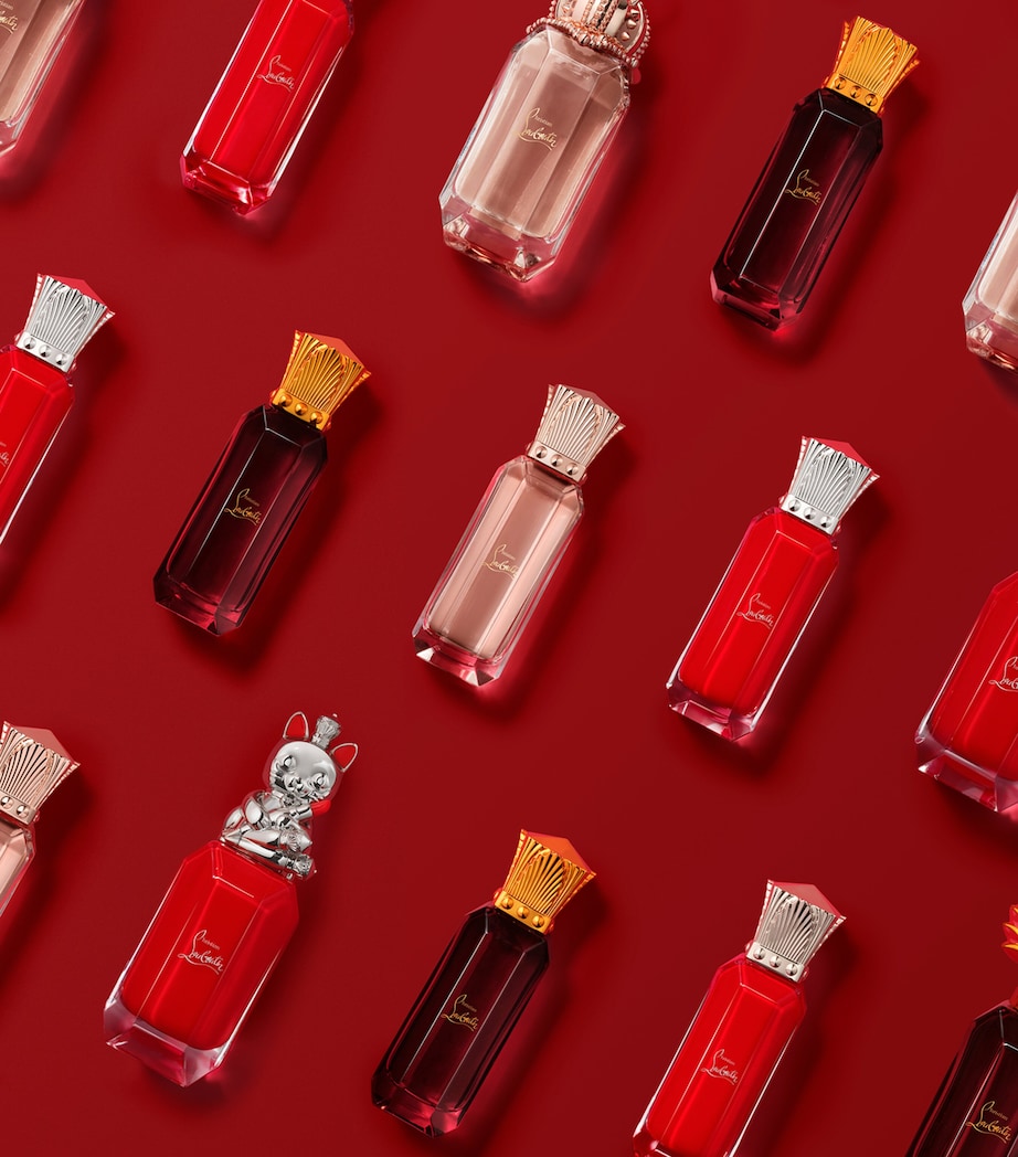 The Loubicharme eau de parfum intense offers a glimpse into the designer’s creative world. Its deep-hued bottle includes a gold-tone cap featuring the Maison’s signature spike studs and palm tree-inspired motifs, nodding to its shoes and accessories collections. The scent itself layers notes of incense with accords of geranium to amplify its olfactory power, with a hint of patchouli balancing the intensity of the fragrance.