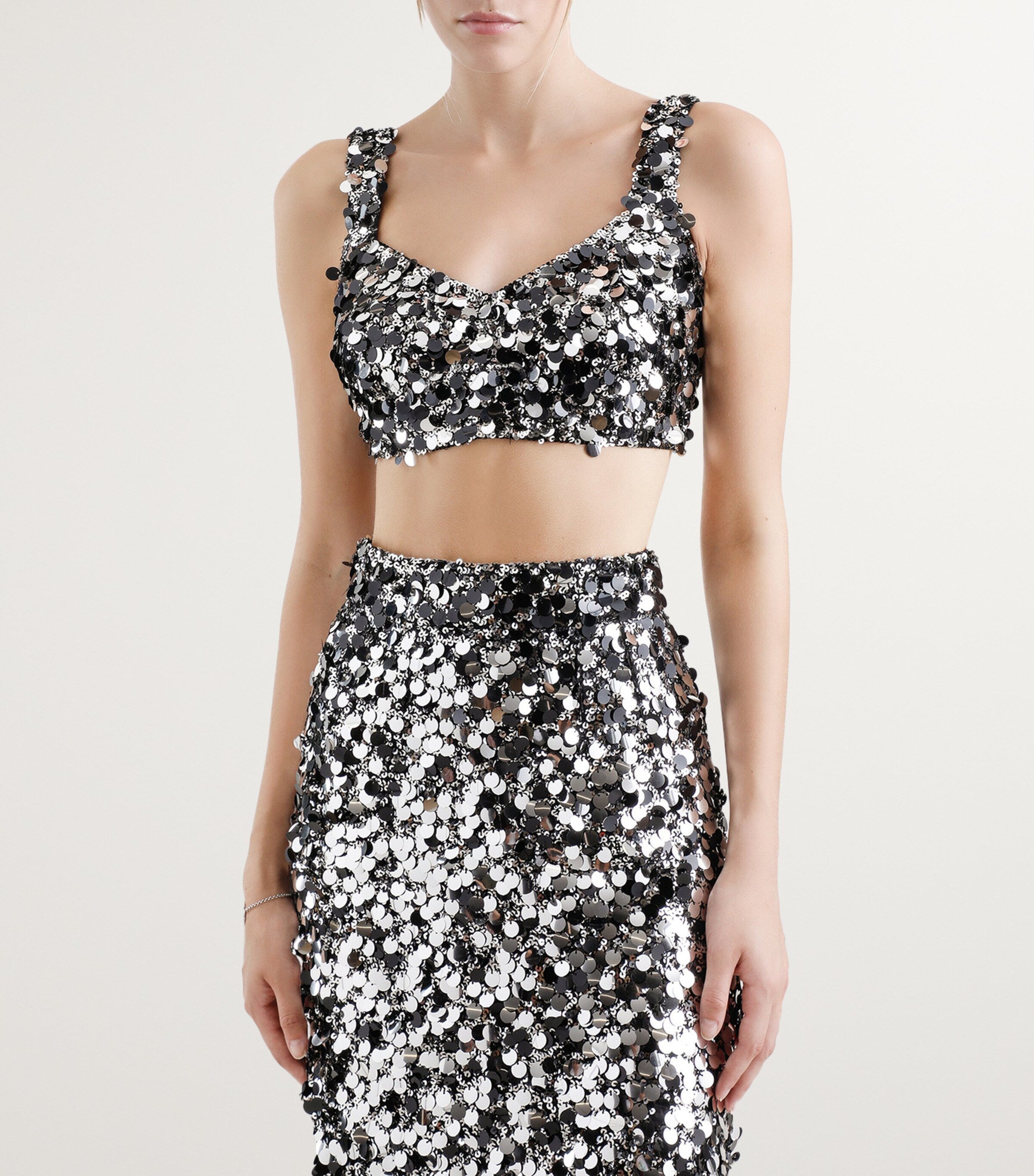 بلوزة قصيرة مزينة بالترتر متعدد الألوان