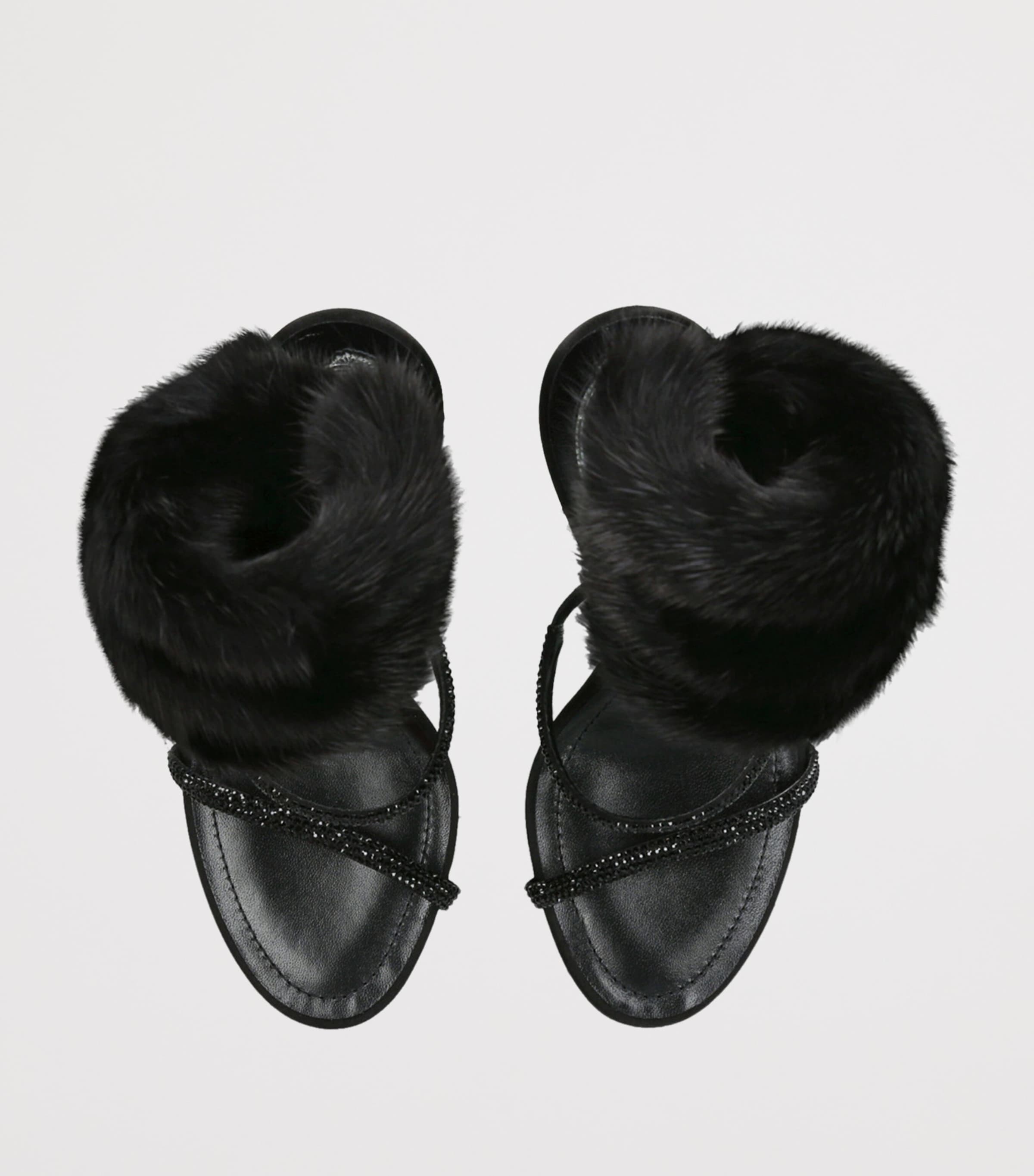 René Caovilla’s design ethos is a love letter to Italian opulence that’s best captured by the label’s flagship Cleo sandals. Modelled on a classic Roman snake bracelet, their winding straps are entirely trimmed with fluffy mink fur, adding unprecedented dimension and definition to the usually slender upper profile.