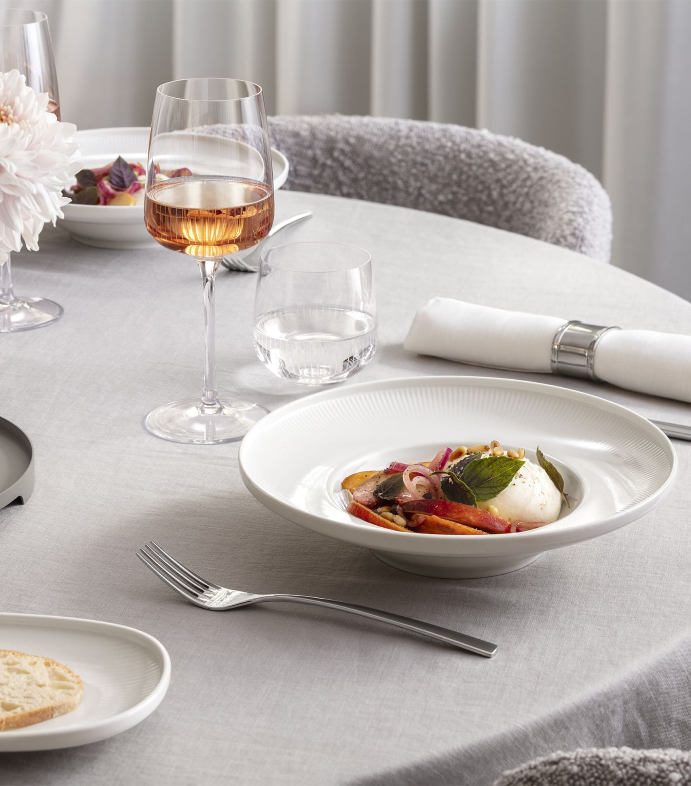 Villeroy & Boch’s glassware collections are often born out of artistic observation, and the Afina series is no different. Inspired by the pursuit of uniqueness and sanctuary, the designer combines minimalist shapes with delicate, handcrafted details to create the Afina water glasses, whose silhouettes mimic concentric rays of sunshine via etched detailing around the base.