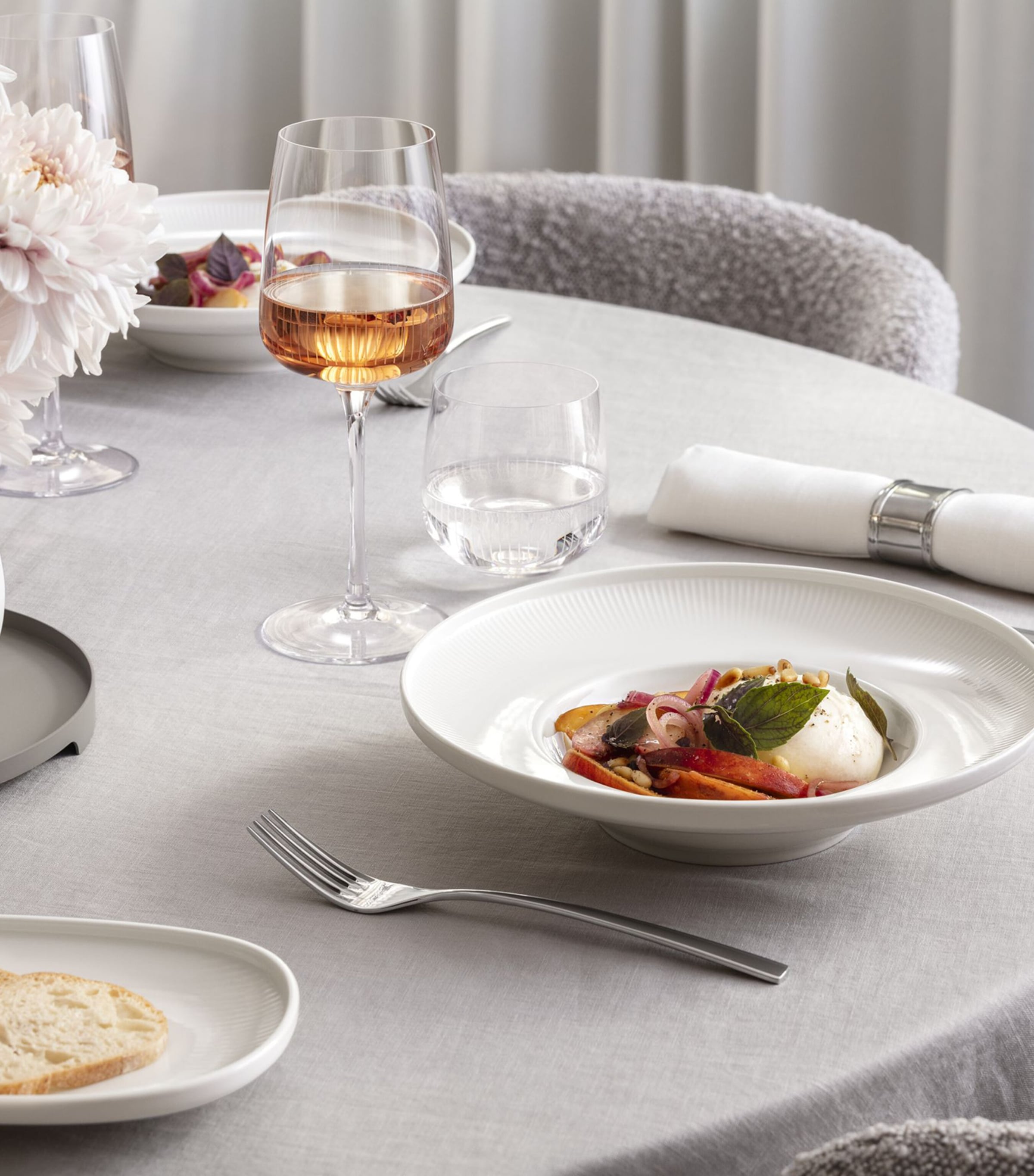 Villeroy & Boch’s glassware collections are often born out of artistic observation, and the Afina series is no different. Inspired by the pursuit of uniqueness and sanctuary, the designer combines minimalist shapes with delicate, handcrafted details to create the Afina white wine glasses, whose silhouettes mimic concentric rays of sunshine via etched detailing to the bowl.
