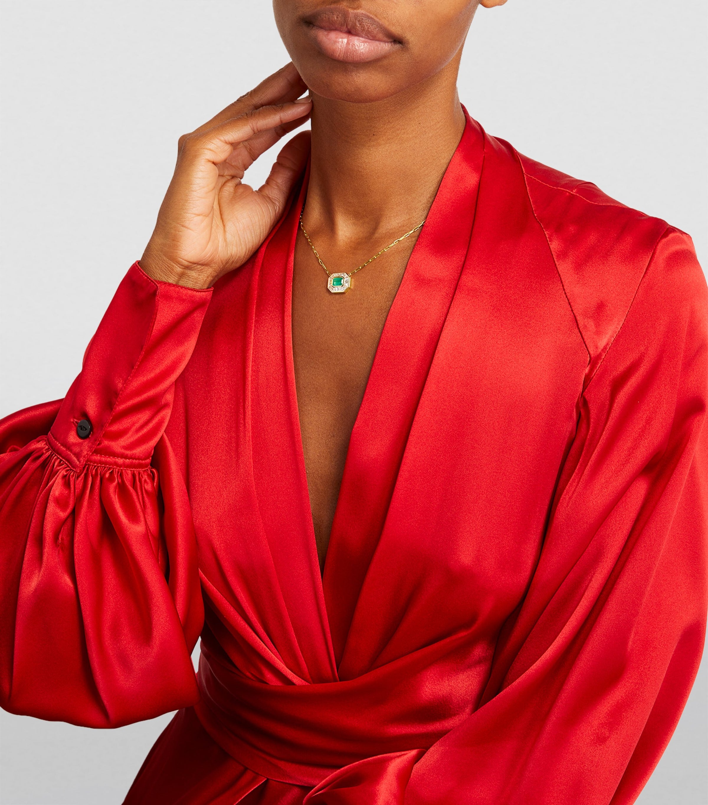بعد عقود من ازدهارها في فرنسا، لا يزال فن الآرت ديكو أحد أكثر الأساليب تأثيرًا في عالم التصميم. في الهندسة المعمارية، يُعرف الآرت ديكو عادةً بخطوطه المتناظرة، وهندسته المستقيمة، وألوانه المعدنية الجريئة كالذهب. وبنقلها الطابع المسرحي المميز لهذا الفن إلى عالم المجوهرات، اختارت SHAY تصاميم حادة ورسومية لابتكار قطعها المستوحاة من الآرت ديكو. ومن أبرز تفاصيل هذه المجموعة؟ حلقات السلسلة الطويلة، كتلك التي تُميز هذه القلادة المصنوعة من الذهب الأصفر عيار 18 قيراطًا، والمُزينة بحجر زمرد نابض بالحياة مُحاط بالألماس.