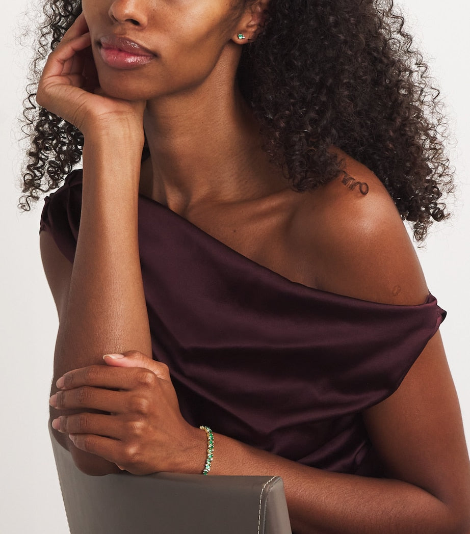 يتمتع عشاق المجوهرات اليوم بخيارات لا حصر لها. فهناك العديد من العلامات التجارية التي تتنافس على جذب انتباههم، وتسعى كل منها إلى التميز عن غيرها. ومن بين هذه العلامات، برزت سوزان كالان التي حققت هوية فريدة من خلال ابتكار تصميم خاص بها. تحتفي هذه الأقراط المصنوعة من الذهب الأصفر عيار 18 قيراطًا بجمال قطع الباغيت، حيث تتألق بحجرين من الزمرد الفاخر إلى جانب ماسة بيضاء واحدة.