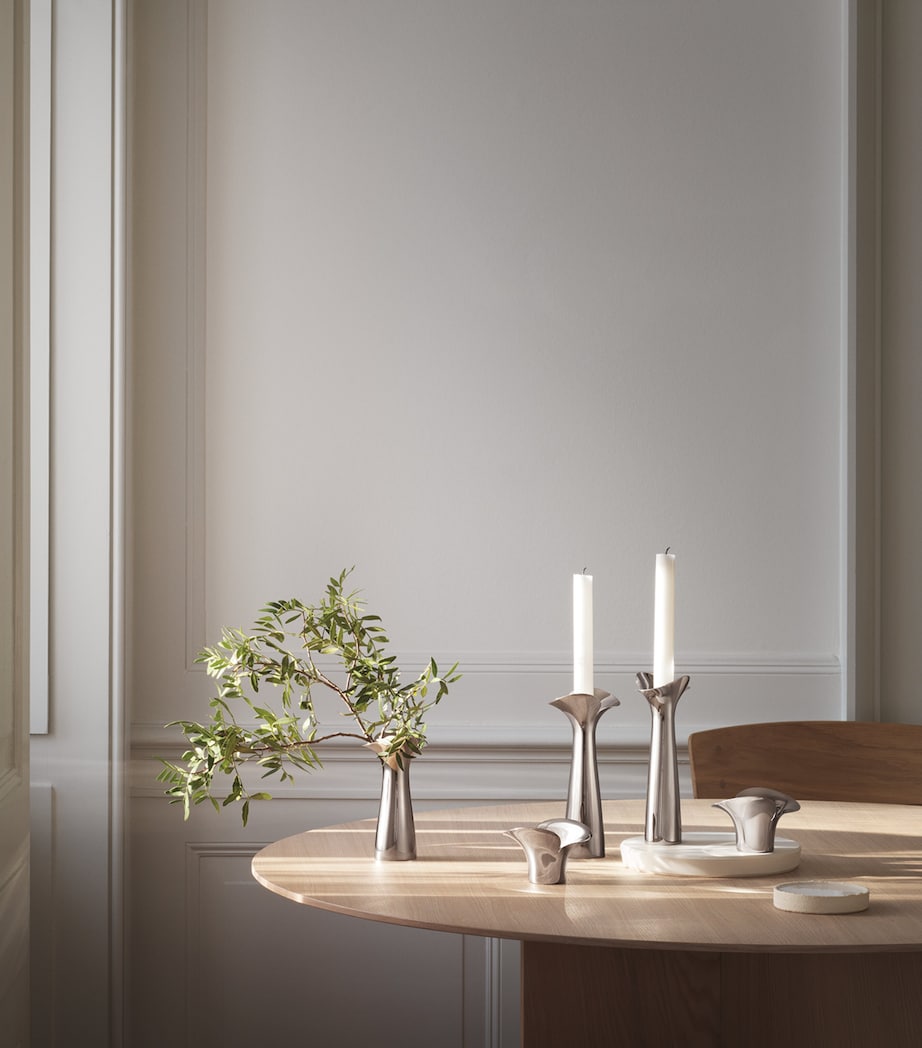 The Bloom collection from homeware specialist Georg Jensen is characterised by the soft organic lines of its objects which perfectly reflect the Danish-born designer Helle Damkjær’s love for the craft and artistry of her work. These candle holders are inspired by the moment in spring when new petals burst forth from a flower bud, set to bring energy and optimism into your home. Crafted from stainless steel, the sculptural objects make a strong impact on the dining table or a windowsill.