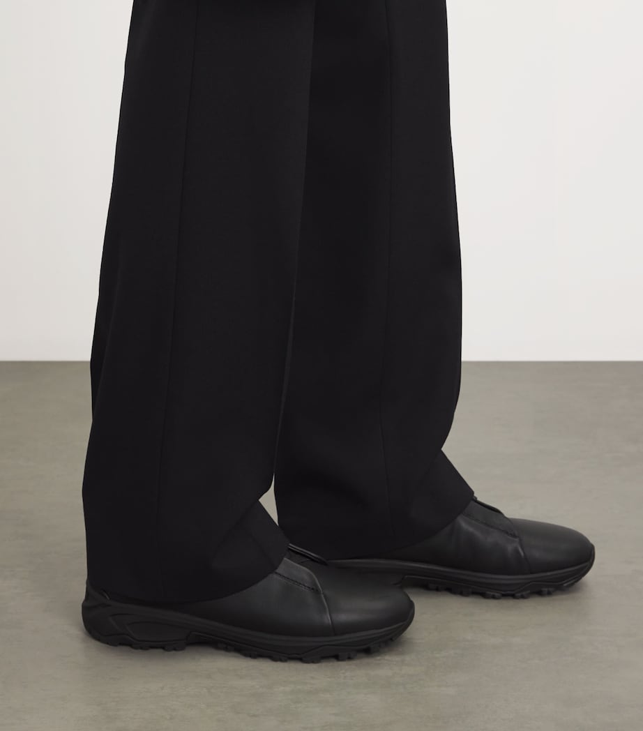 Where the comfort and light weight of sneakers meet the sturdiness of boots, Zegna’s Triple Stitch Vetta design showcases an abundance of the brand’s sophisticated allure via a supple leather upper and minimalist look. The pair is decidedly practical, with the addition of a toggle fastening and elasticated straps in place of laces creating a polished finish and leaving no room for dangling loops.