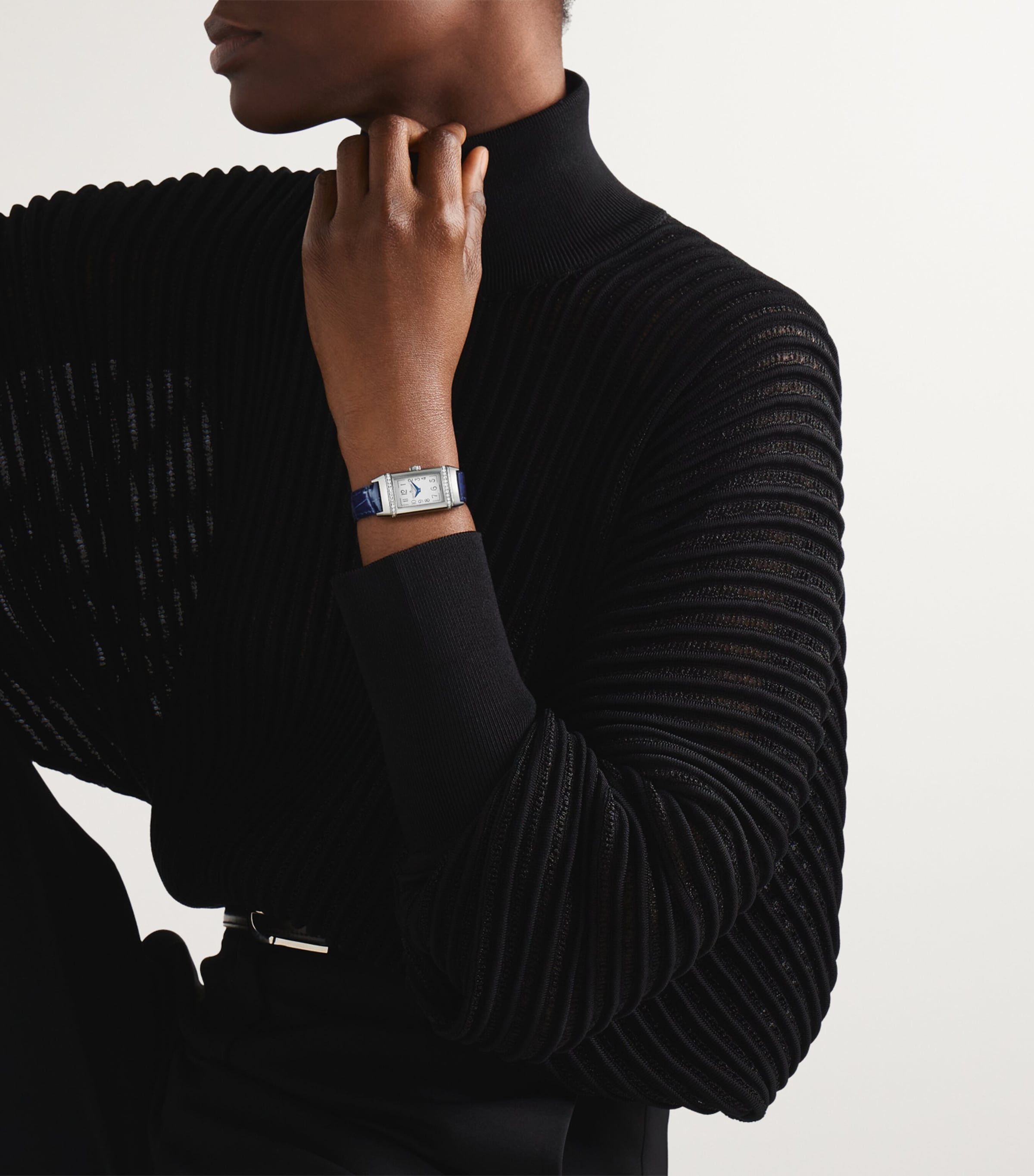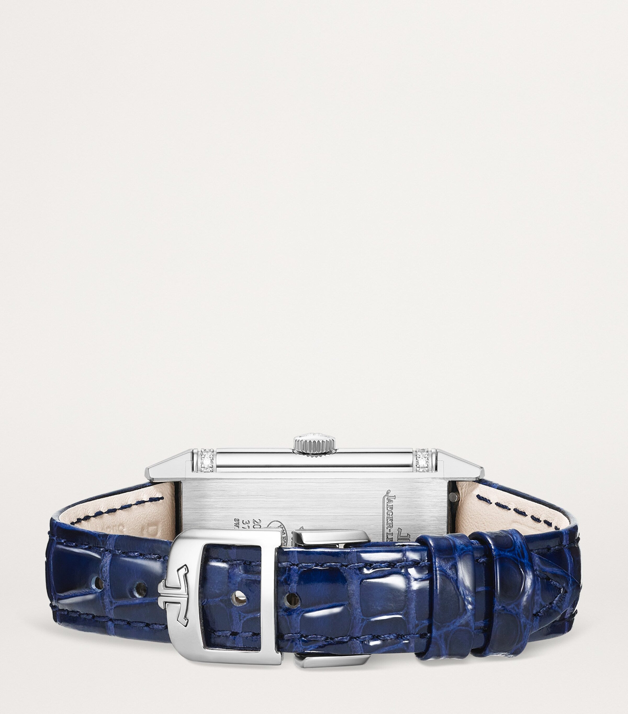تُضفي ساعة Jaeger-LeCoultre Reverso One Duetto لمسةً أنيقةً على أي معصم بفضل علبتها المصنوعة من الفولاذ المقاوم للصدأ وسوارها المصنوع من جلد التمساح، وتُتيح خيارين من الموانئ التي تعمل بنفس الحركة الميكانيكية اليدوية. يتميز الميناء الأول بخطوط مستوحاة من فن الآرت ديكو مع زخارف غيوشيه أنيقة، بينما يتميز الميناء الثاني بتصميم أشعة الشمس وترصيعات ماسية براقة.