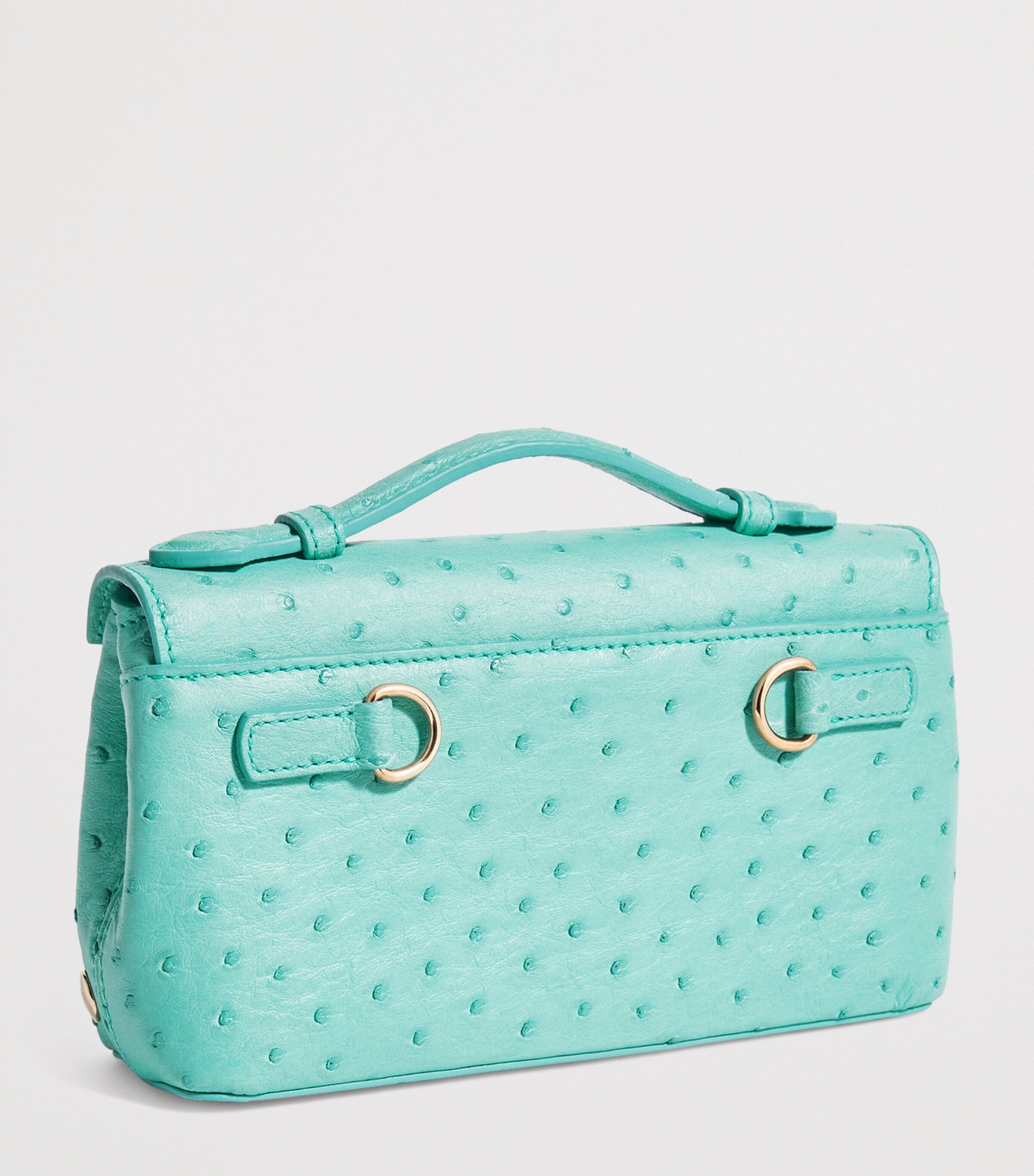 حقيبة أنالينا زرقاء من جلد النعام بمقبض علوي