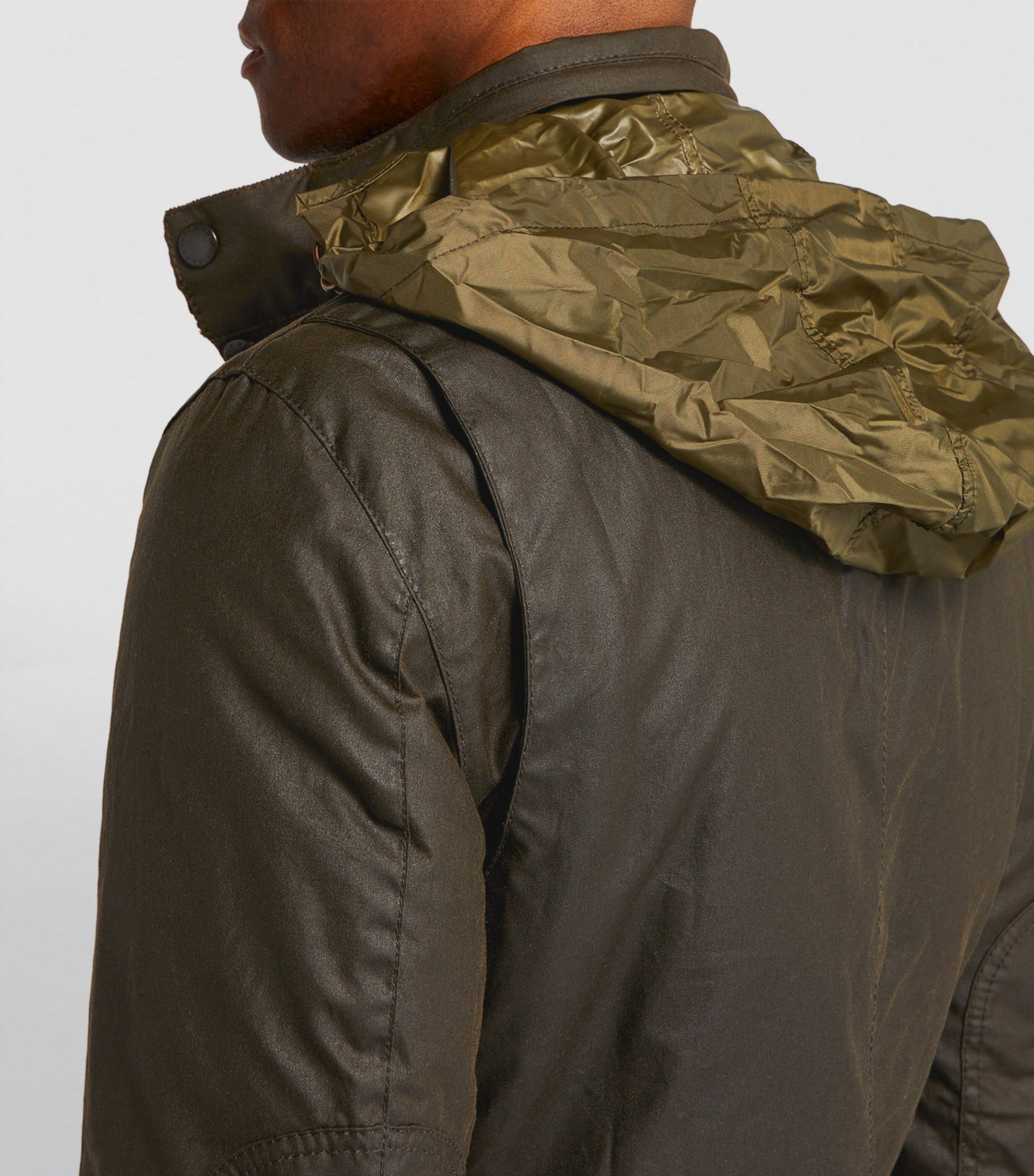سترة شمعية بغطاء رأس من باربور باللون الأخضر