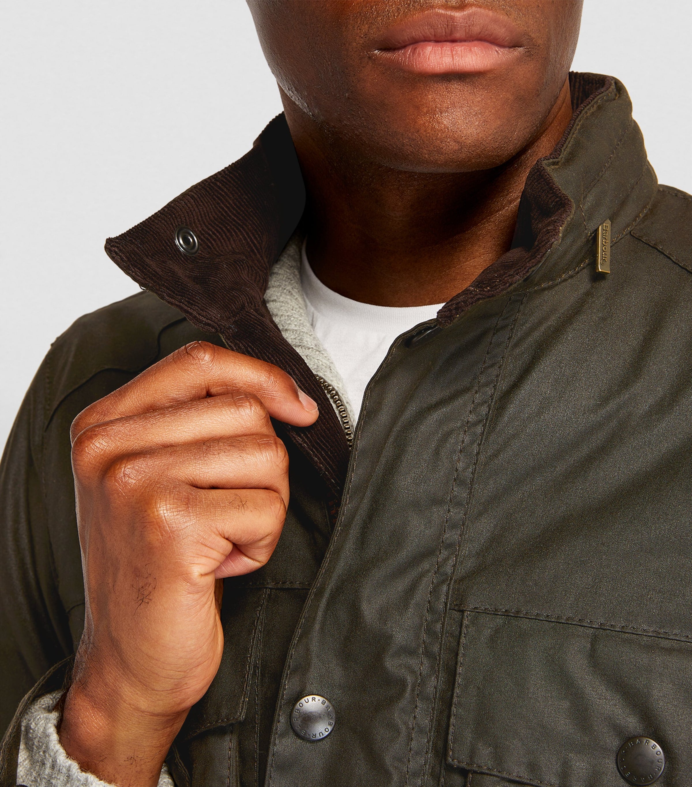سترة شمعية بغطاء رأس من باربور باللون الأخضر - زيتون / كبير جدًا