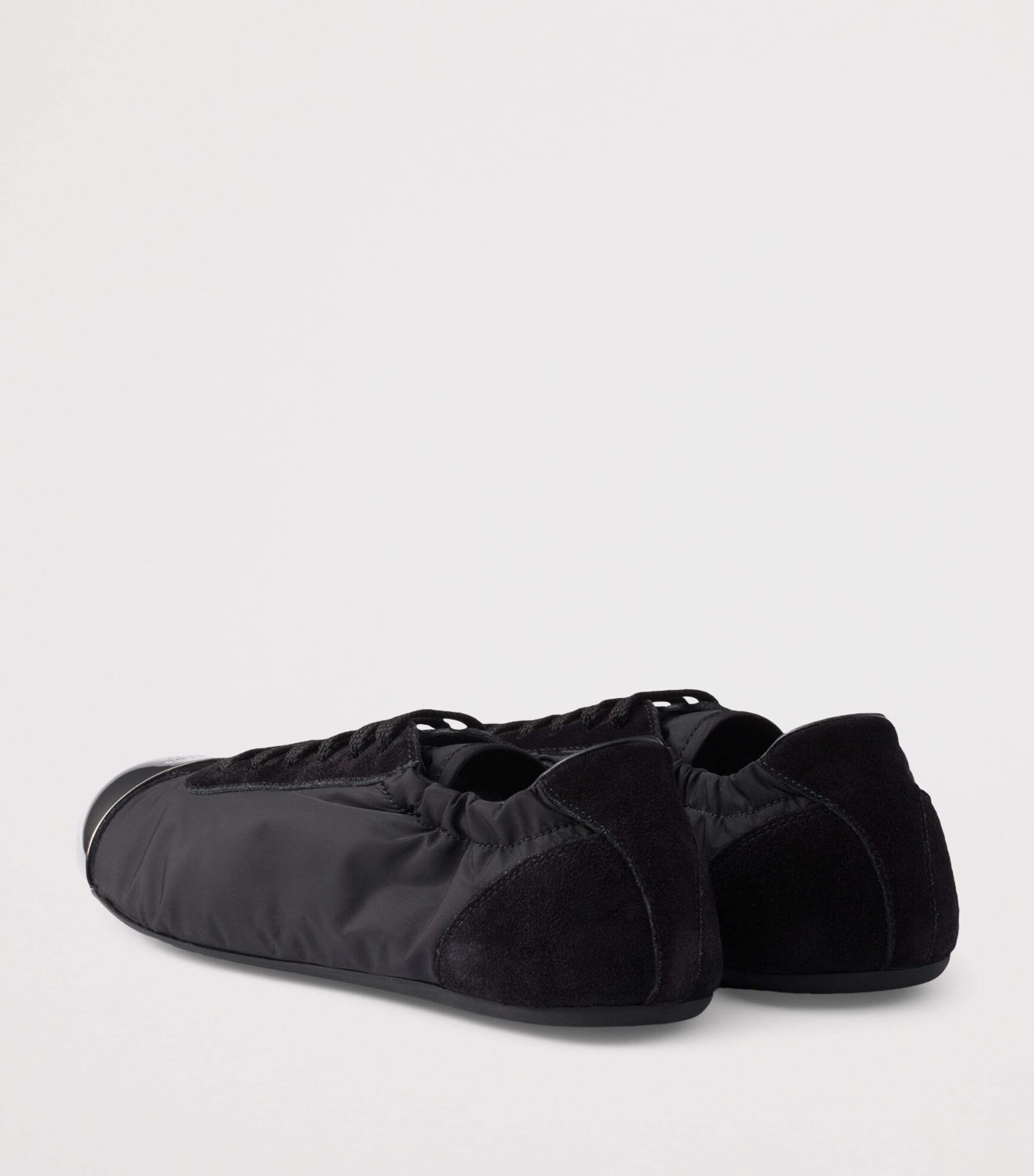 حذاء رياضي قابل للطي من الجلد المدبوغ الأسود والنايلون والمعدن