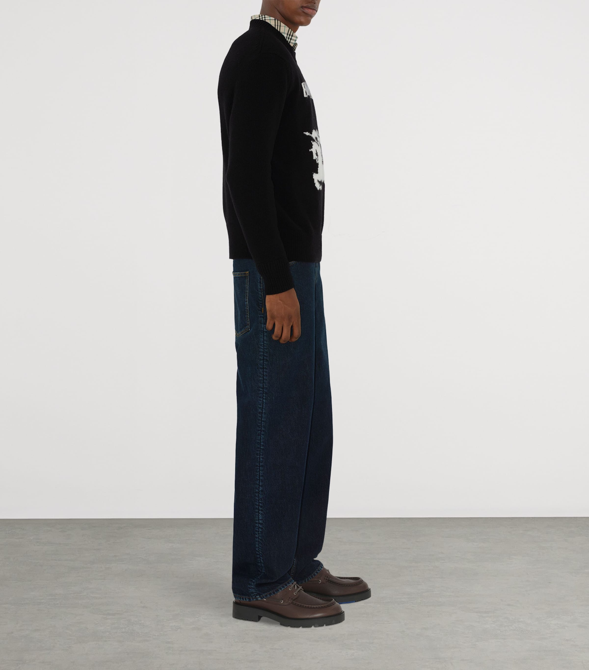 عندما طُرح تصميم "فارس الفروسية" من بربري لأول مرة عام ١٩٠١، كان مصحوبًا بكلمة "برورسوم" اللاتينية، والتي تعني "إلى الأمام". ومنذ تولي دانيال لي إدارة دار الأزياء، جسّد هذه الفلسفة، دافعًا بالأيقونة البريطانية إلى عالم الموضة المعاصرة مع الحفاظ على تراثها؛ فعلى سبيل المثال، تتميز هذه السترة المصنوعة من الصوف والكشمير الناعم بتصميم مريح وكتف منسدل، مزينة بنسيج جاكار يحمل شعار العلامة الأيقوني وشعارها الطباعي المتجدد.