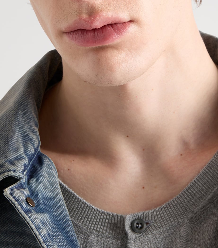 أزرار ذهبية اللون تُضفي لمسة كلاسيكية. صُبغت سترة الدنيم هذه من برادا لإطلالة عتيقة تجمع بين رموز الكلاسيكية والمعاصرة، وهي سمة مميزة لجماليات الدار الإيطالية. بتصميمها الشبيه بالقميص، وأكتافها المنسدلة، وجيوبها المتعددة، تُضفي لمسة عملية على إطلالاتك الأكثر راحة.