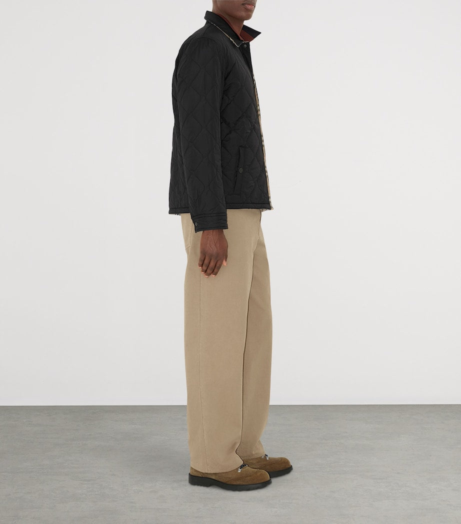 في مجموعة خريف/شتاء 2025 من بربري، اصطحب دانيال لي، المدير الإبداعي، الدار في رحلة عبر الريف البريطاني. هذه السترة القابلة للعكس مثالٌ واحدٌ فقط على التزام العلامة بتراثها؛ إذ يكشف أحد جانبيها عن بطانة نايلون مقاومة للماء، بينما يتيح لك الجانب الآخر اختيار نقشة بربري الشهيرة على كامل التصميم - مهما كانت هواياتك في الهواء الطلق.