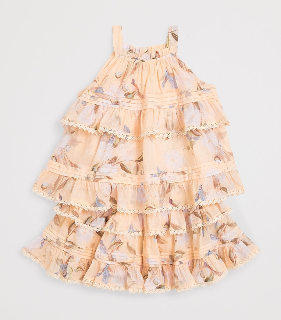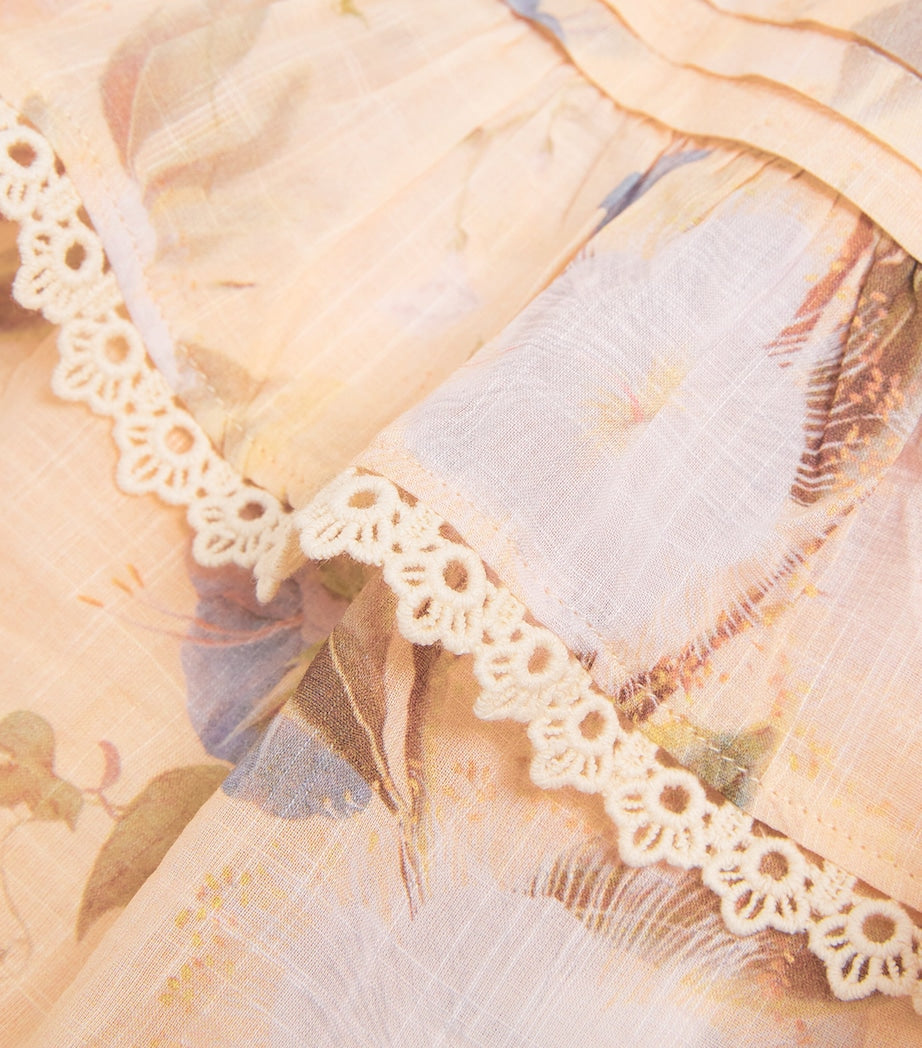 Brimming with florals and ruffles, the Cascadian Swing top by Zimmermann Kids is made from pure, lightweight cotton – with a smooth cotton lining, too – that’s perfect for warm-weather dressing. The design is finished with crochet trims over the ruffles, an effect that brings this style in line with the wider summertime collection.