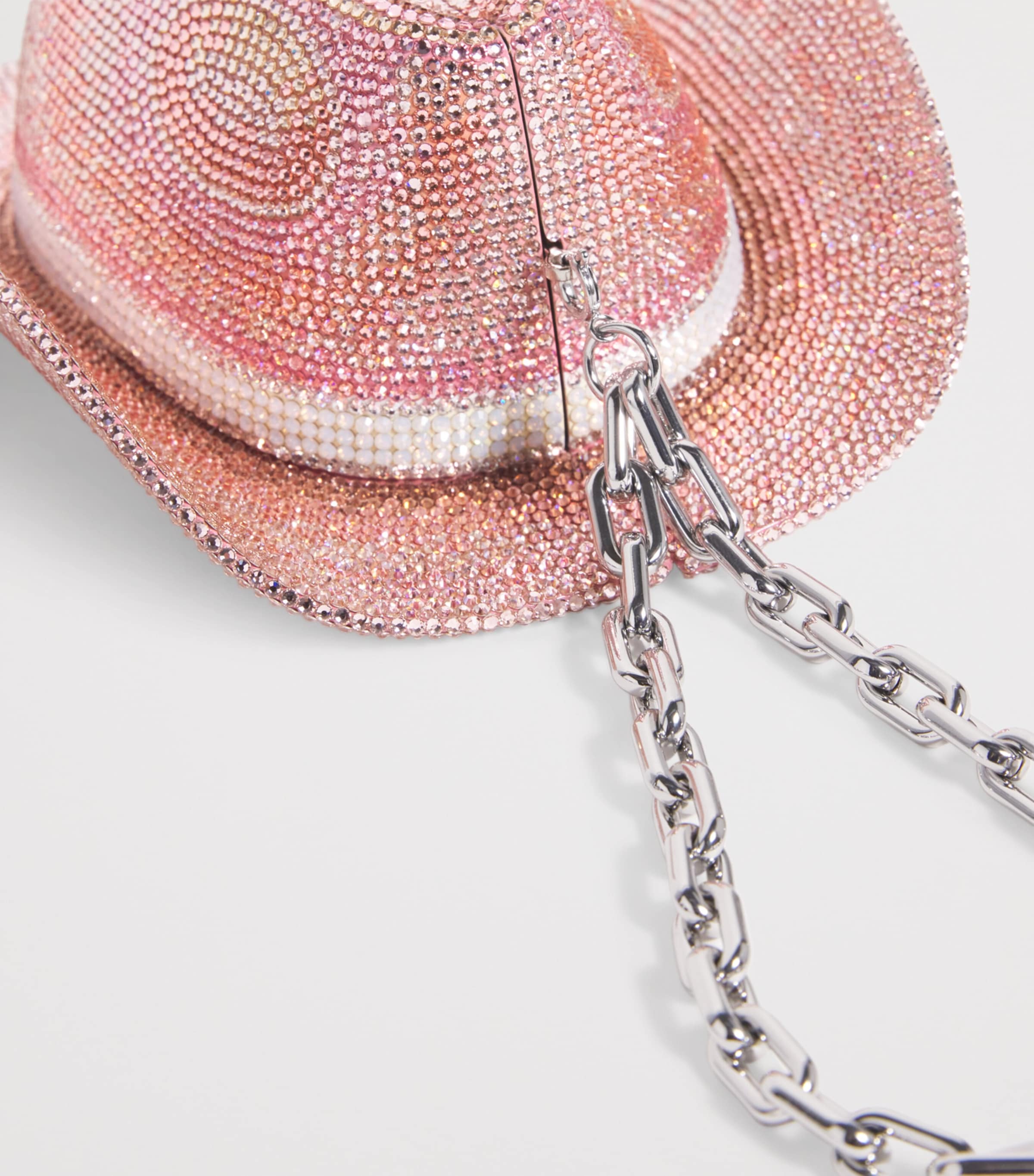 مستوحاة من جذورها الأمريكية، تُحيي جوديث ليبر الأسلوب الغربي بحقيبة داكوتا "كاوبوي هات". صُممت الحقيبة بسلسلة معصم وسلسلة كروس لسهولة الحمل مهما كانت رحلتك، وتتألق بكريستالات ملونة تضمن لكِ تألقًا في كل مناسبة.