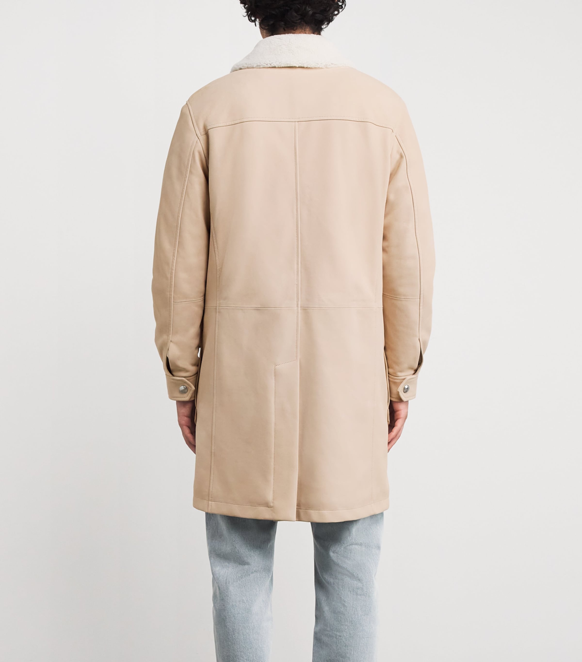 معطف باركا من جلد النوبوك البيج من إليفنتي مع ياقة من الفرو