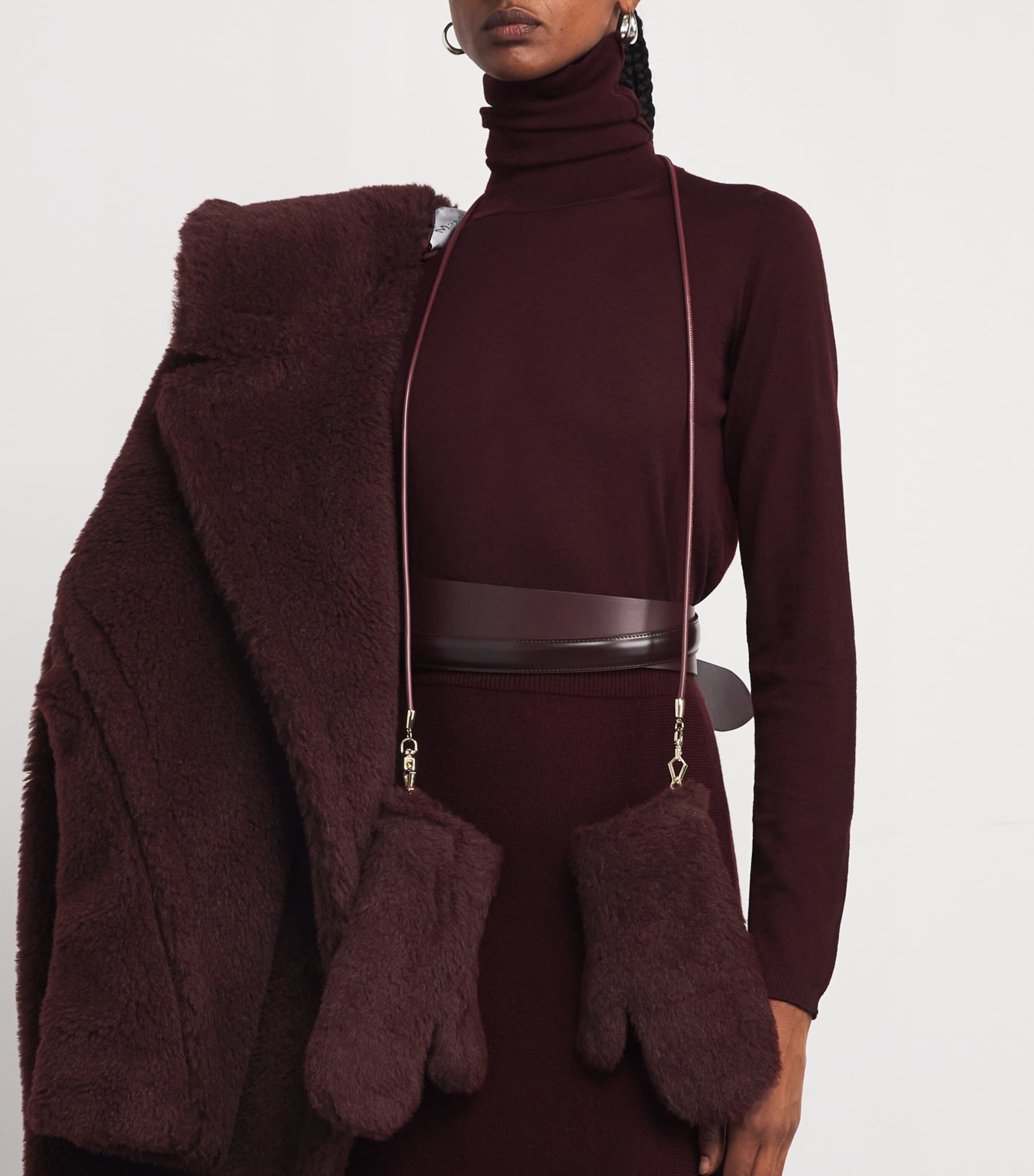 باعتبارها واحدة من أقدم العلامات التجارية الإيطالية الباقية، لا تزال ماكس مارا تحظى بالإعجاب لاستخدامها الأقمشة الفاخرة، حتى في إكسسواراتها. صُنعت هذه القفازات المريحة من قماش تيدي المميز للعلامة التجارية، المصنوع من صوف الألبكة، على قاعدة حريرية، لتمنح شعورًا بالنعومة والدفء في الأجواء الباردة، مع حبل تعليق قابل للفصل يضمن بقاءها في متناول اليد دائمًا.