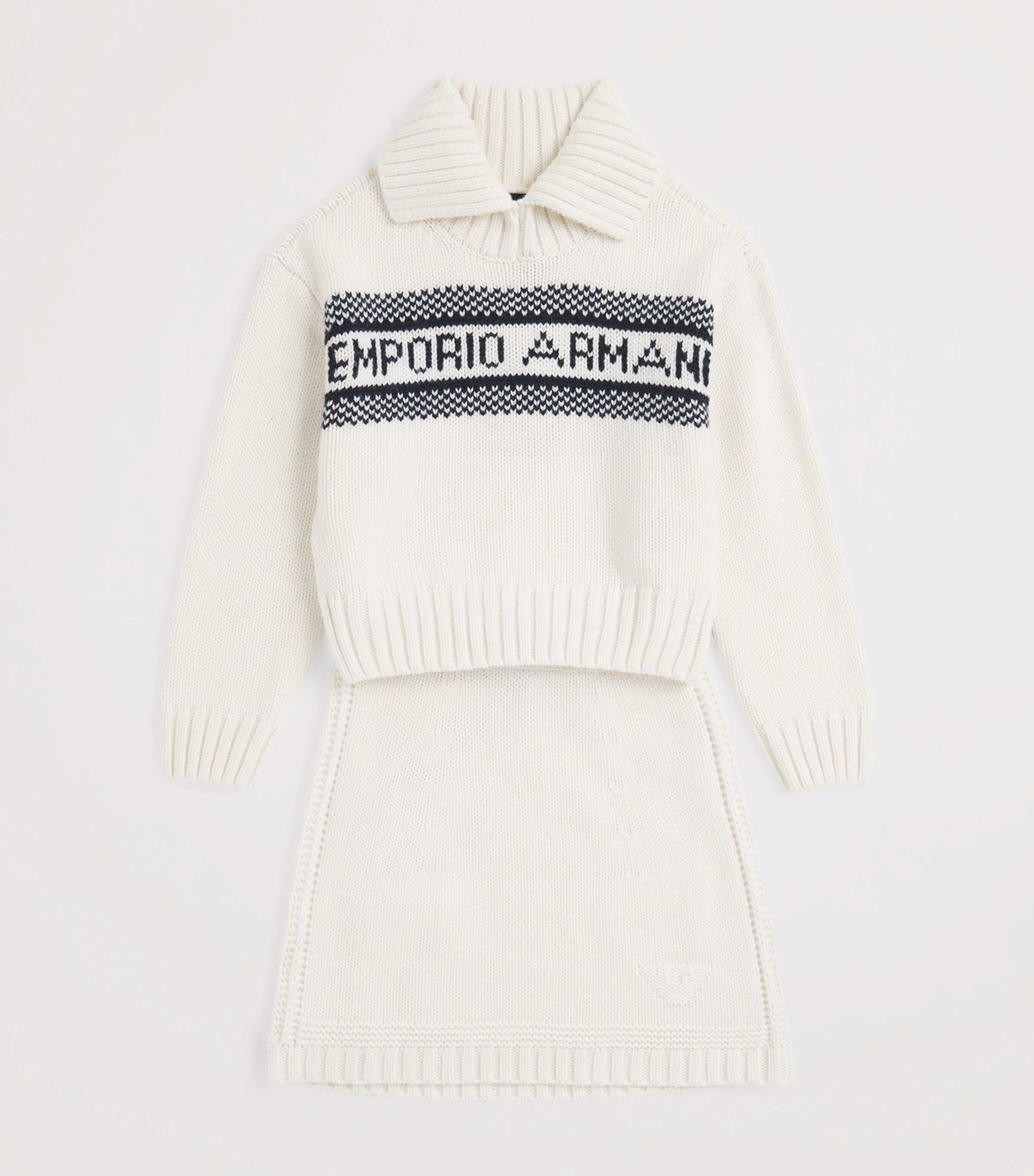 Softly spun and subtly structured, this virgin wool-blend skirt from Emporio Armani Kids is woven with care and finished with delicate volume that moves with every step. Designed to match the coordinating sweatshirt, its intricately stitched pattern brings a playful sense of polish.