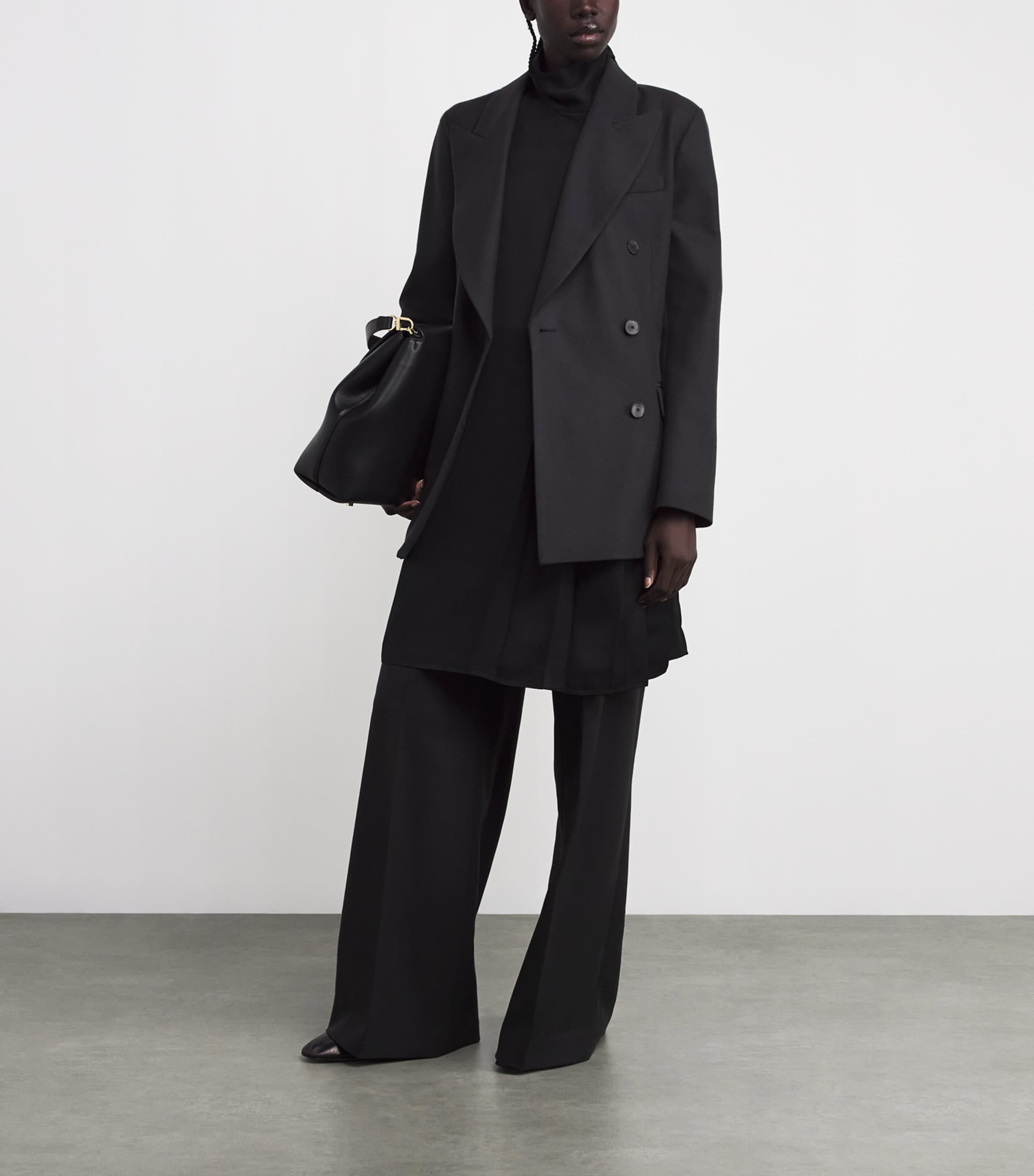 يُعيد جوزيف لمسةً من القوة إلى البليزر. لطالما كانت البليزرات ذات الصفّين رائجةً في أزياء النساء منذ صيحة الأناقة في ثمانينيات القرن الماضي، وتُعيد بليزر فاليري من جوزيف إحياء كل ما جعل هذه الإطلالة مؤثرة. تُضفي حشوة الكتف لمسةً مميزة، بينما يُوفر قماش الفلانيل الصوفي الناعم راحةً مُحكمة.