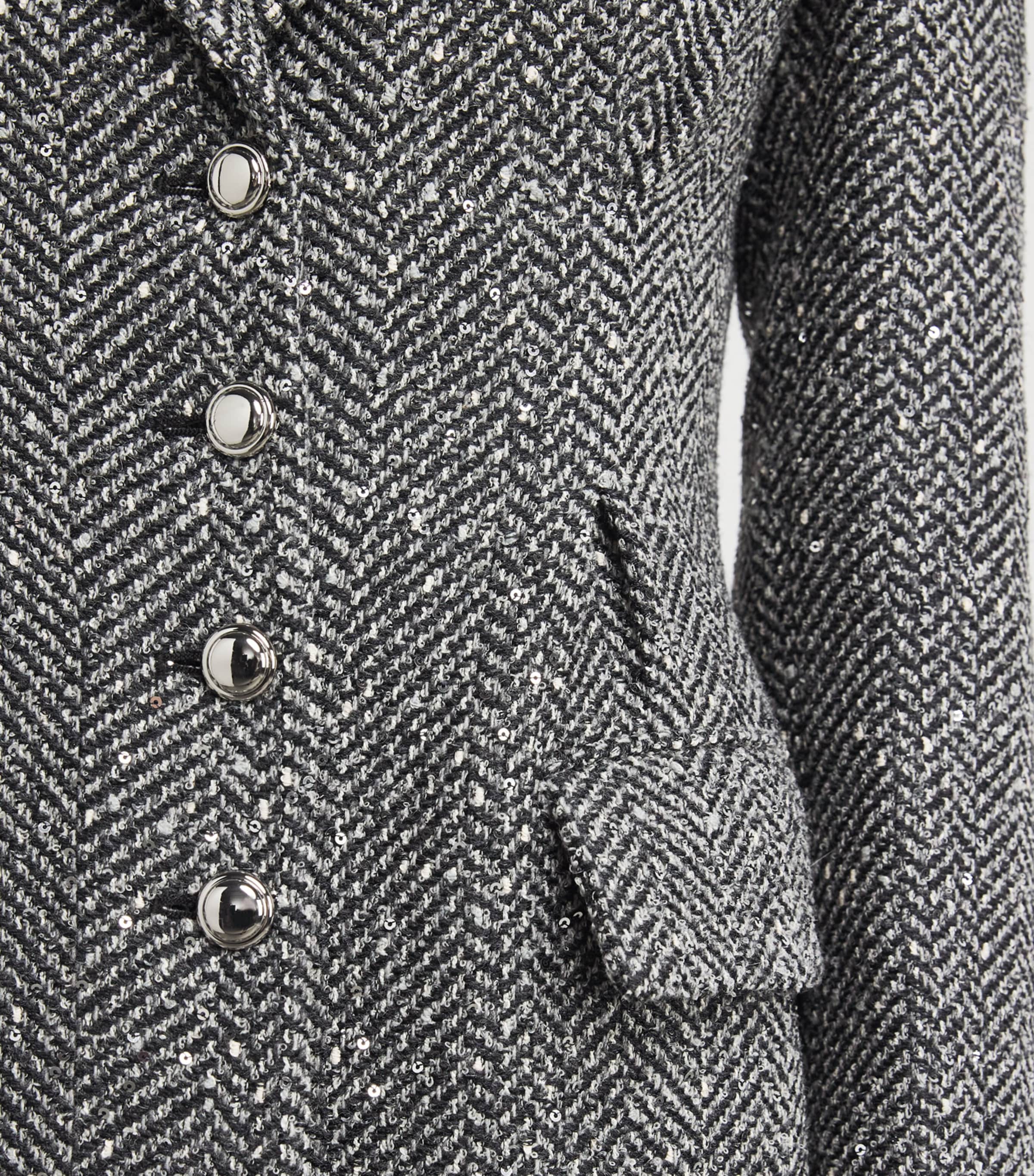 معطف أليساندرا ريتش رمادي من التويد مزين بالترتر
