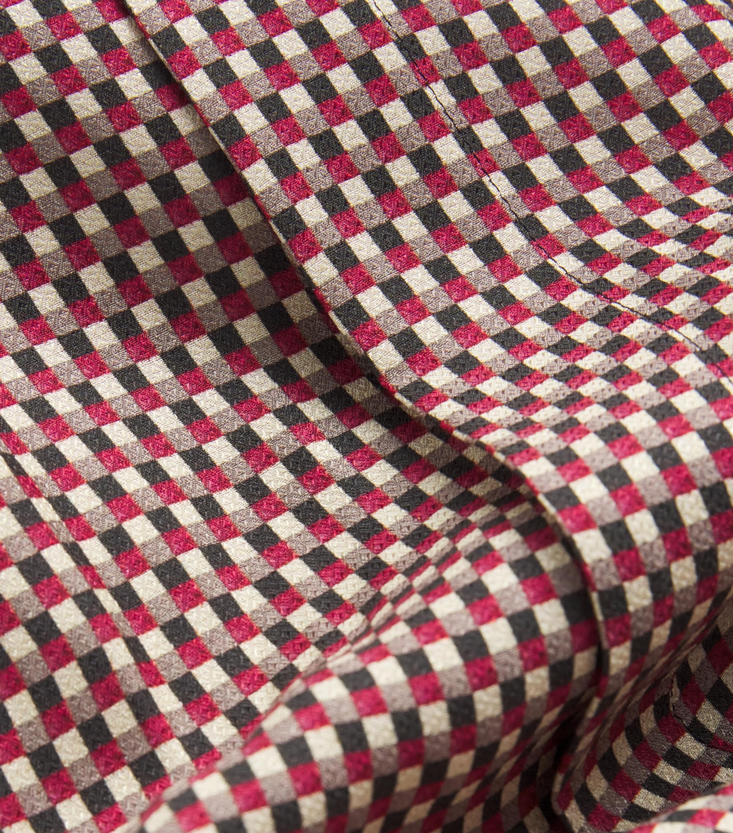 صُنع هذا الفستان القميص متوسط ​​الطول من مزيج أقمشة انسيابي يتضمن الحرير، ويتميز بطبعة مربعات عصرية، مما يضمن انسيابية رائعة وملمسًا ناعمًا على البشرة. يتميز الفستان بتناسق مثالي بفضل طيّتين أماميتين، بينما يكتمل التصميم بحاشية غير متماثلة ناعمة.