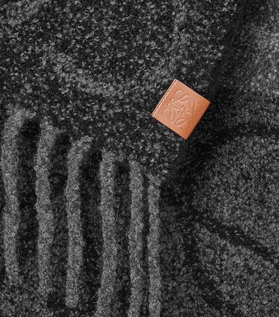 هذا الوشاح من LOEWE، الإضافة المثالية لمجموعة الشتاء الخاصة بكِ، مُصمّم بجاكار أنجرام ثنائي اللون، ومُزيّن بعروة جلدية ناعمة تحمل شعاركِ. مصنوع من مزيج من صوف الألبكة والصوف، ليرافقكِ خلال فصول السنة براحة وأناقة.