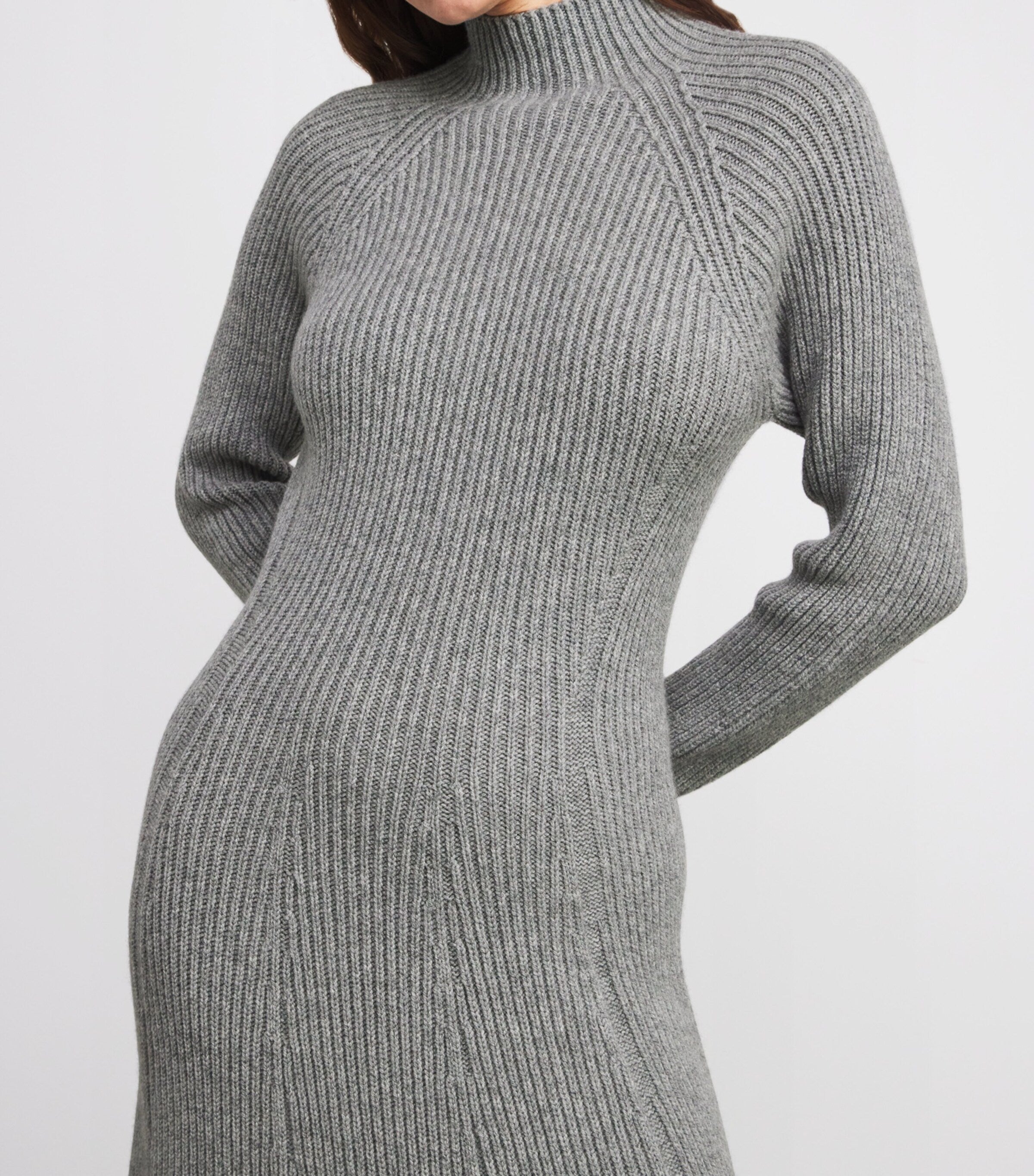فستان جونستونز أوف إلجين رمادي متوسط ​​الطول محبوك ومضلع من مزيج الكشمير