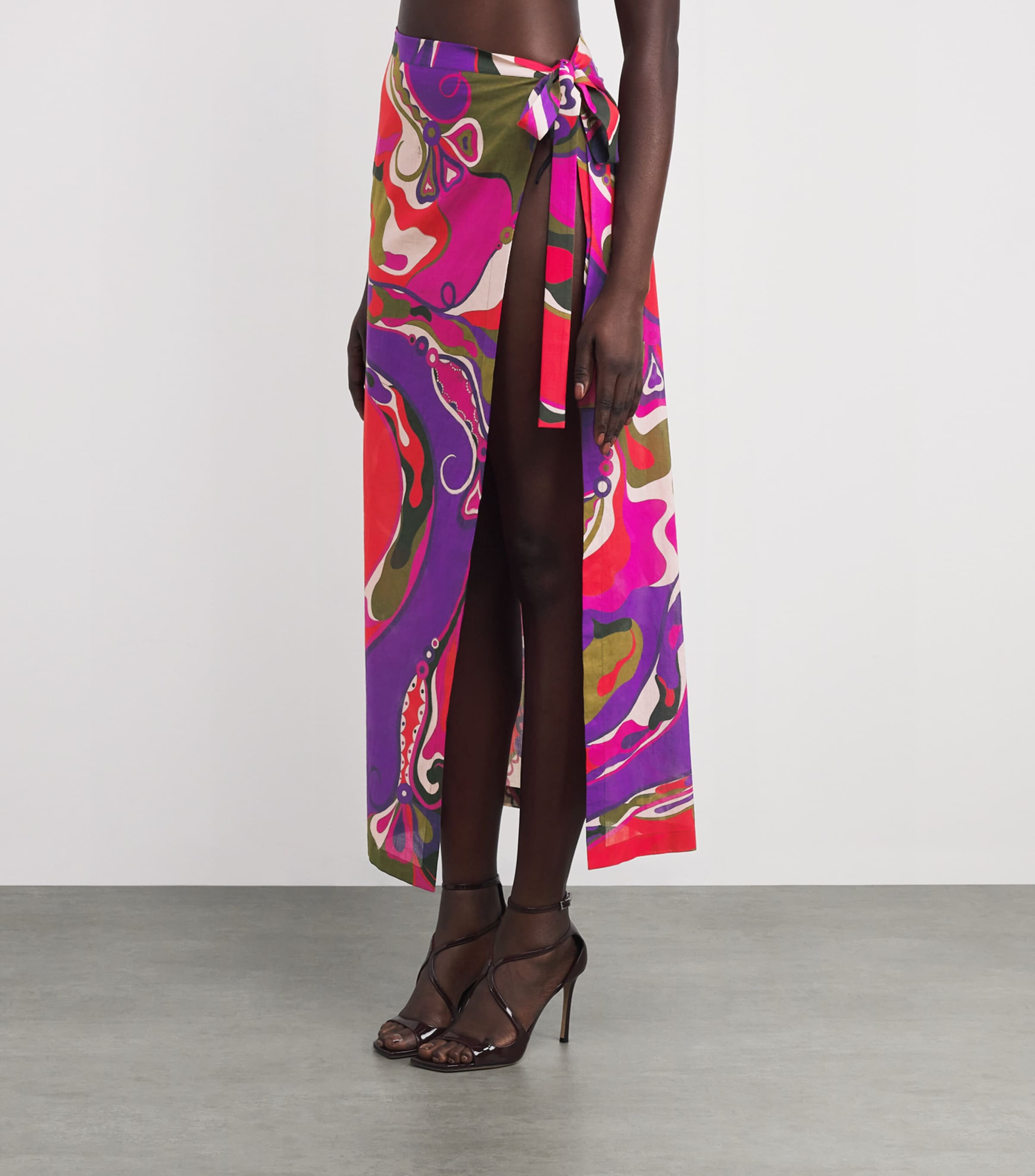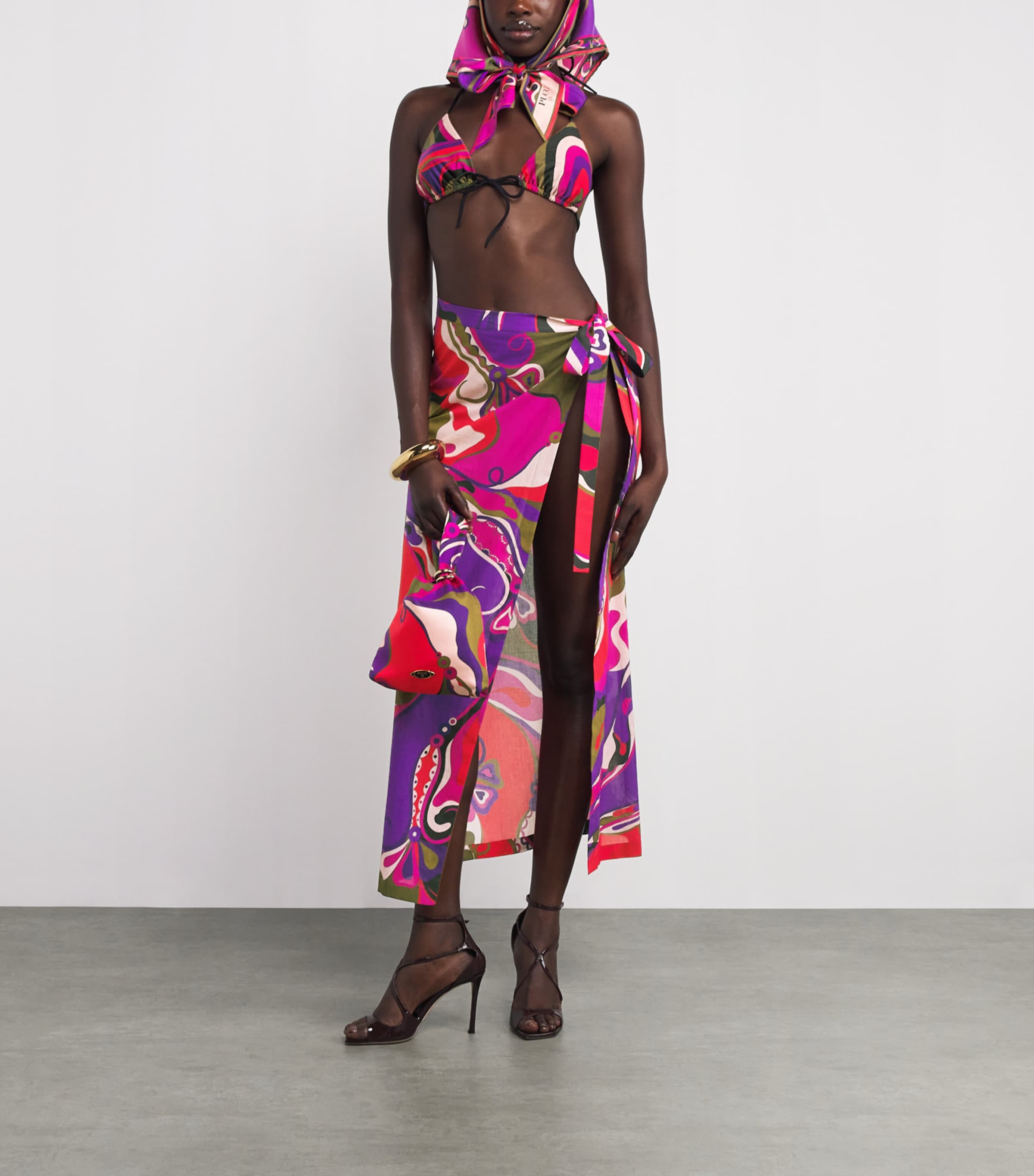 تألقي بفخامة ملونة مع هذا الباريو القطني من بوتشي، الذي يُبرز أحد زخارف الدار الجريئة والنابضة بالحياة. سواءً ارتديته مع البكيني المطابق لإطلالة مميزة أو مع ألوان هادئة، فإن تصميم الربطة الجانبية مثالي للارتداء بعد السباحة. التفاصيل
