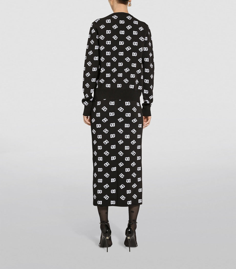 لطالما كانت الملابس المزينة بالشعارات جزءًا لا يتجزأ من سوق المنتجات الفاخرة منذ ثمانينيات القرن الماضي، حيث أصبحت تصاميم المونوغرام الآن شكلاً خالدًا من التصميم الجرافيكي. هذه التنورة الضيقة المحبوكة من دولتشي آند غابانا الإيطالية مزينة بشعار "D&G" اللافت، مما يضمن ذوقك الراقي في عالم الأزياء.