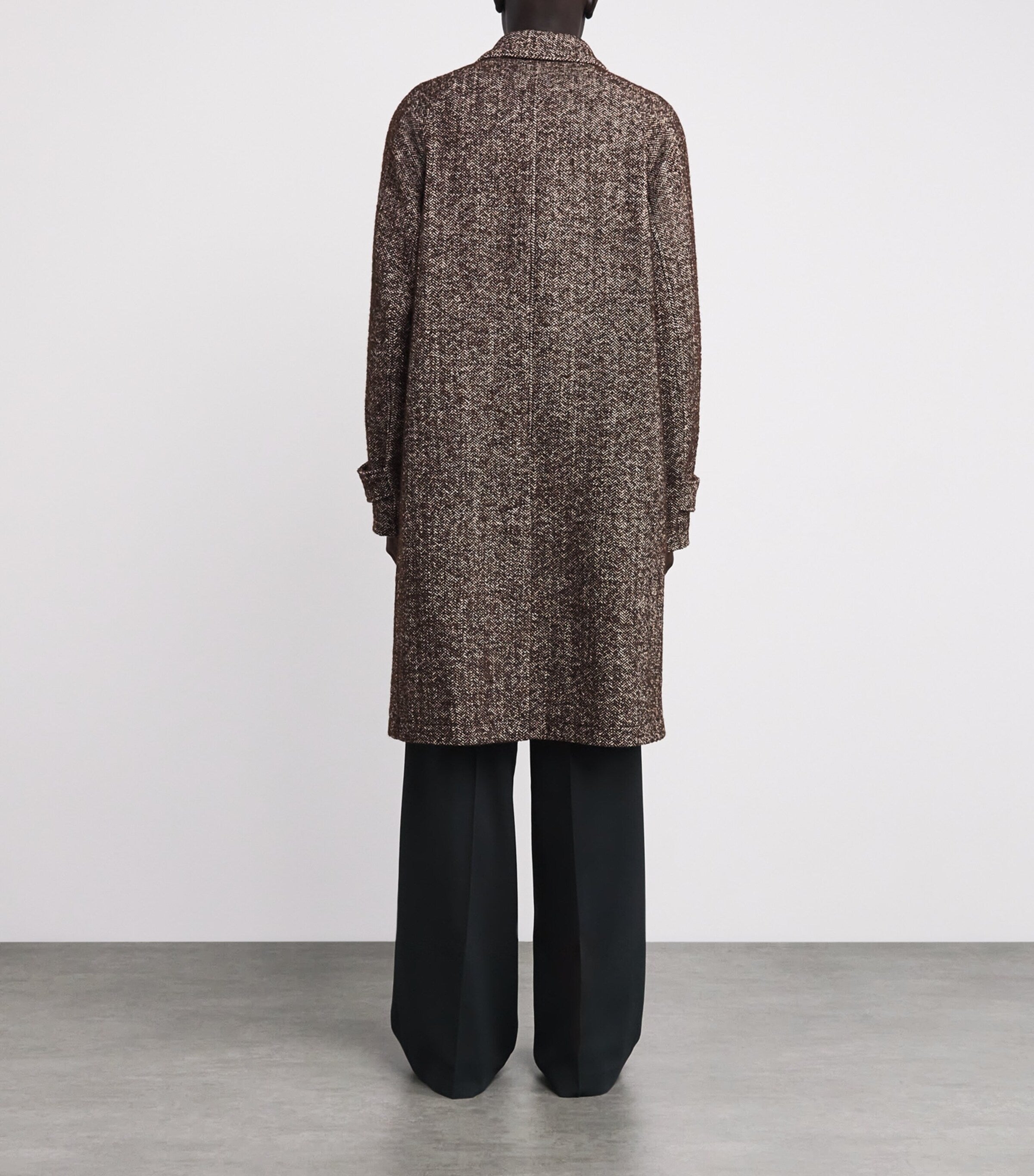 عندما تستخدم علامة أوفيتشين جنرال الباريسية الطبعات أو الخامات، فإنها تفعل ذلك بنظرة ثاقبة، حيث تختار خامات خالدة تتوافق مع قيمها الأساسية المتمثلة في "خزانة ملابس يومية". مثال على ذلك، هذا المعطف الكلاسيكي بأكمام راجلان يُبرز نسيج متعرج غني، وهو نسيج يُرادف للملابس الخارجية التراثية الراقية.