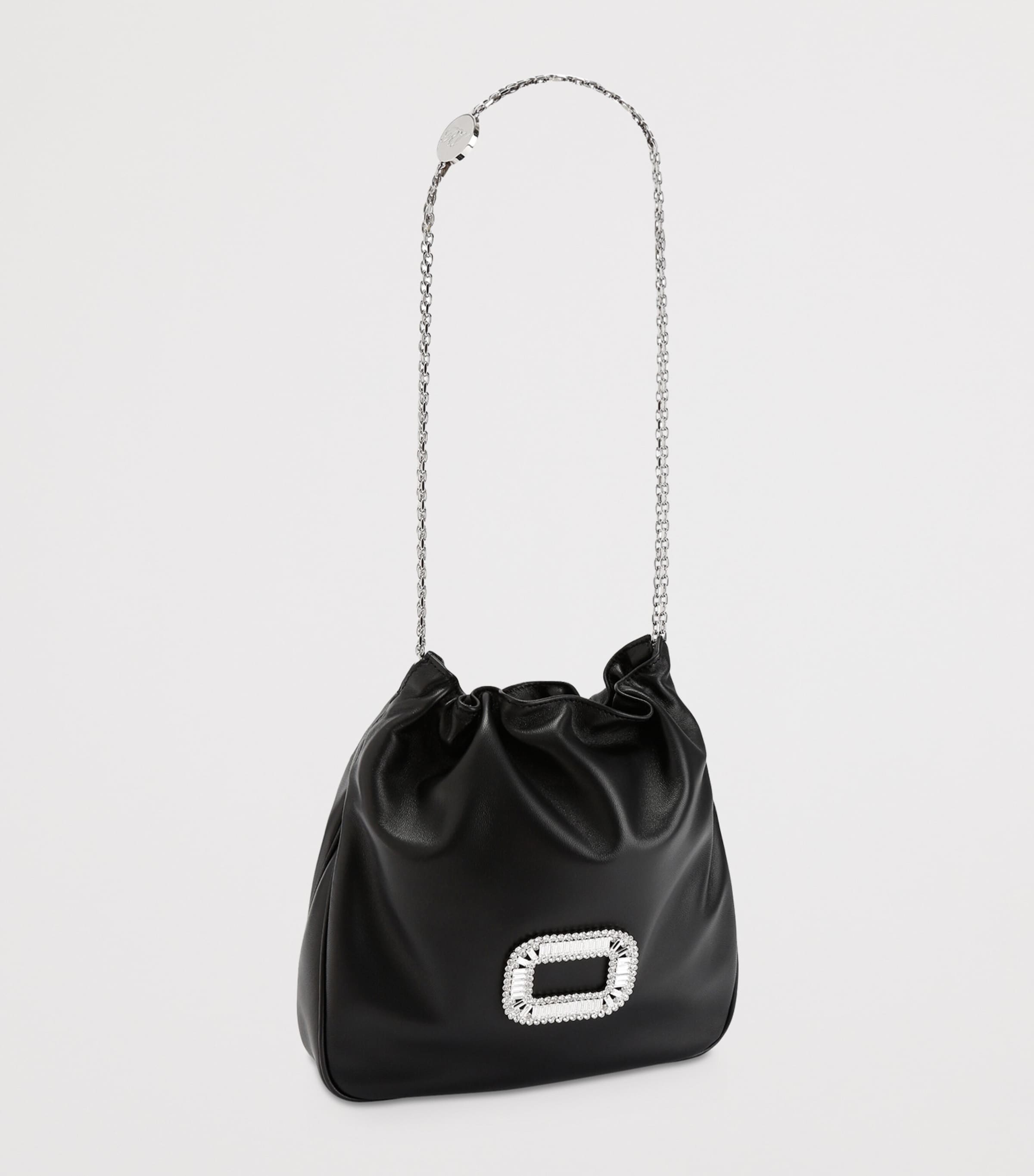 تتبع روجر فيفييه نهجًا أشبه بالمجوهرات في تزيين حقائبها، مما يوفر التناغم المثالي مع إكسسواراتكِ. على سبيل المثال، تُجدد حقيبة بيلجريم الصغيرة بتصميم الدلو المشبك الأيقوني بكريستالات باغيت مرصعة يدويًا تتألق على جلد النابا الناعم، مما يضفي بريقًا جذابًا على إطلالاتكِ.