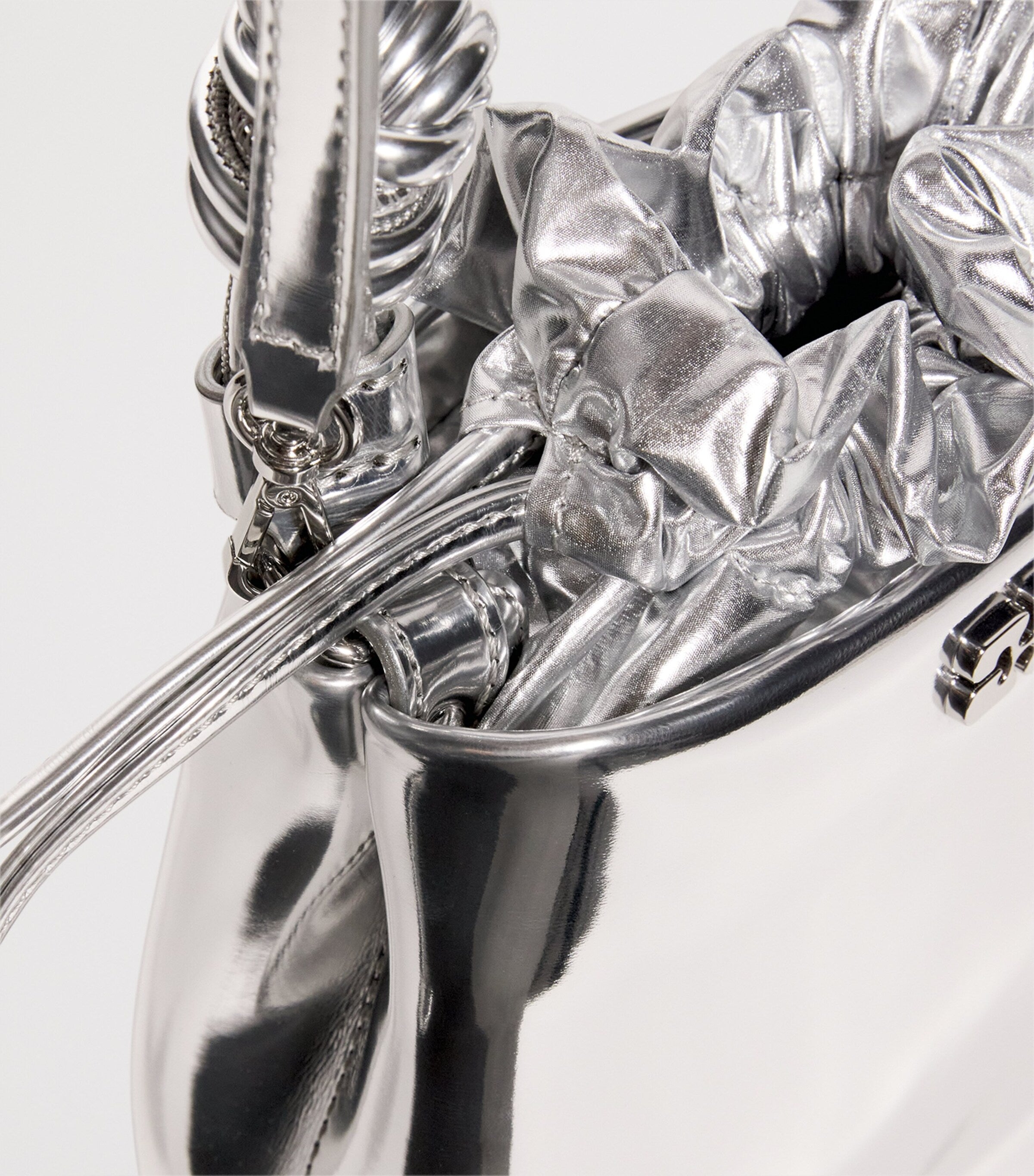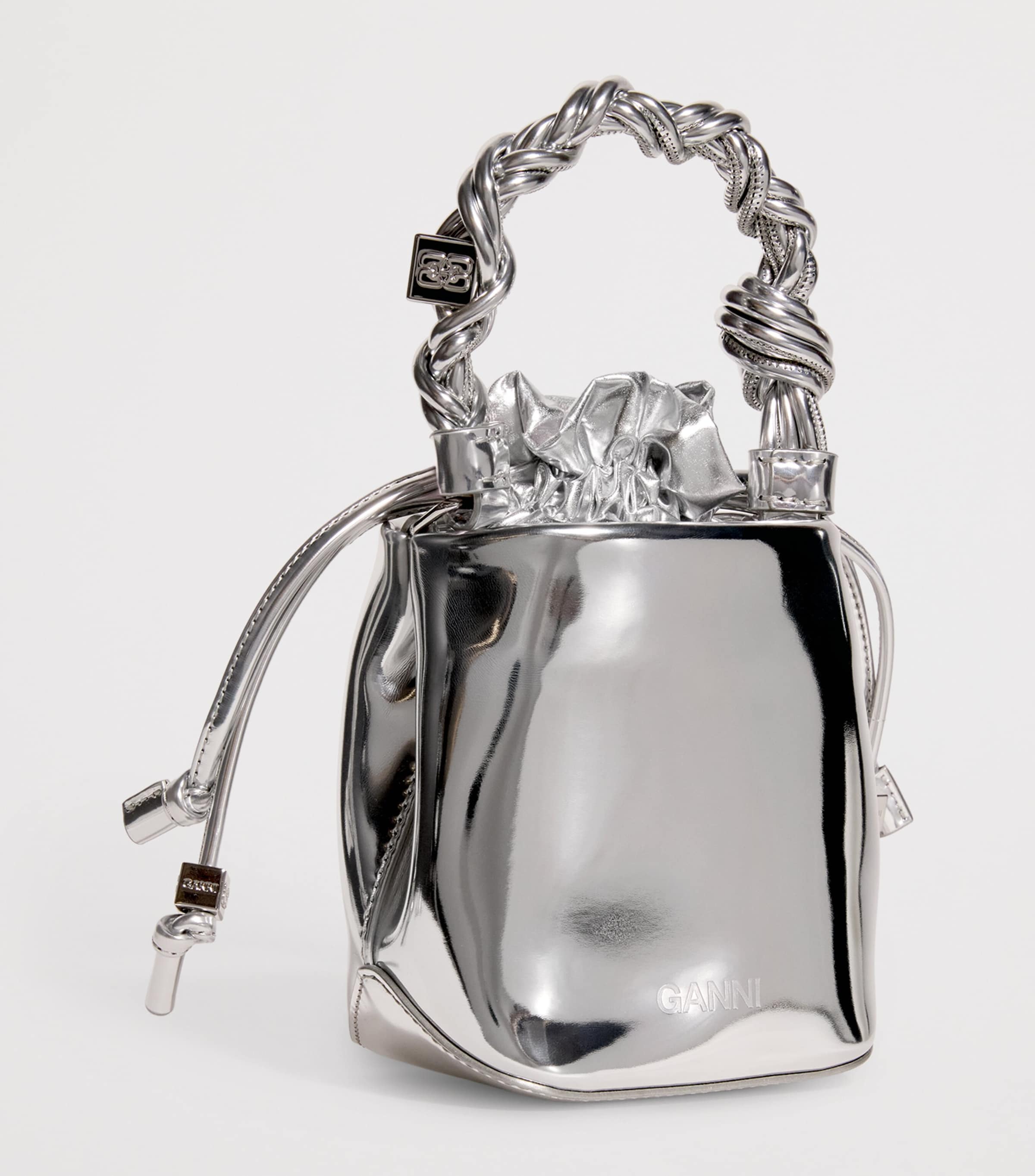 صُممت هذه الحقيبة ذات التصميم الدلو من غاني بمقبض علوي مضفر يشبه حقيبة بو الشهيرة، لتضفي لمسةً من الأناقة المرحة على أي إطلالة. مصنوعة من 65% من الجلد المعاد تدويره، وتُعدّ إضافةً لا غنى عنها في مجموعة حقائبكِ، مع حزام قابل للفصل يُضفي عليها تنوعًا.