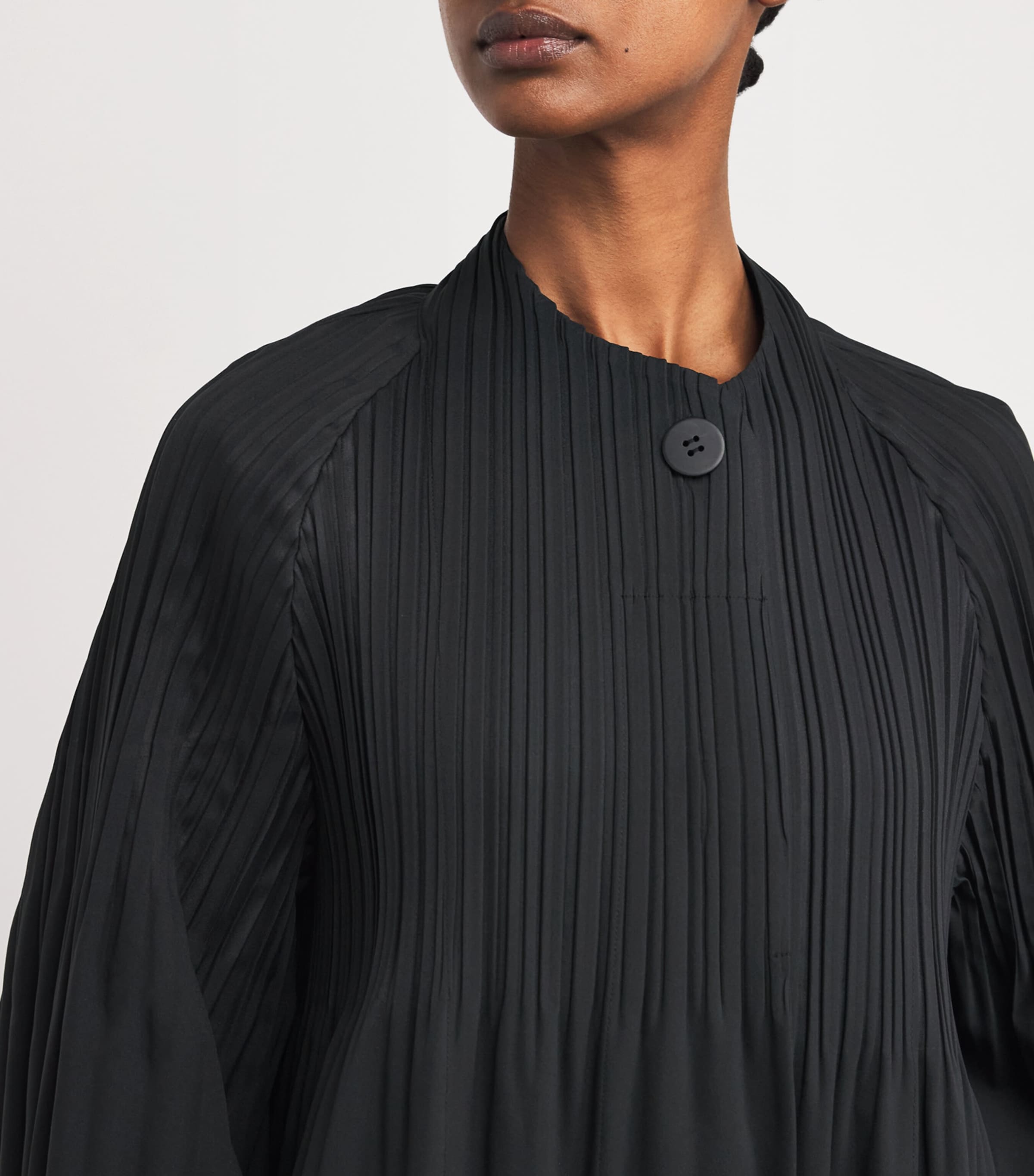 من البديهي أن معطف Pleats Please، كهذا المعطف من مجموعة Smooth Coat، لن يكون ذا قيمة لولا الطيات المميزة للعلامة التجارية. تُركز هذه العلامة التجارية، وهي علامة مُشتقة من Issey Miyake، على التقنية الفريدة وخصائصها العملية، مما يُنتج قطعةً مقاومة للرياح ومريحة، وبالطبع أنيقة.