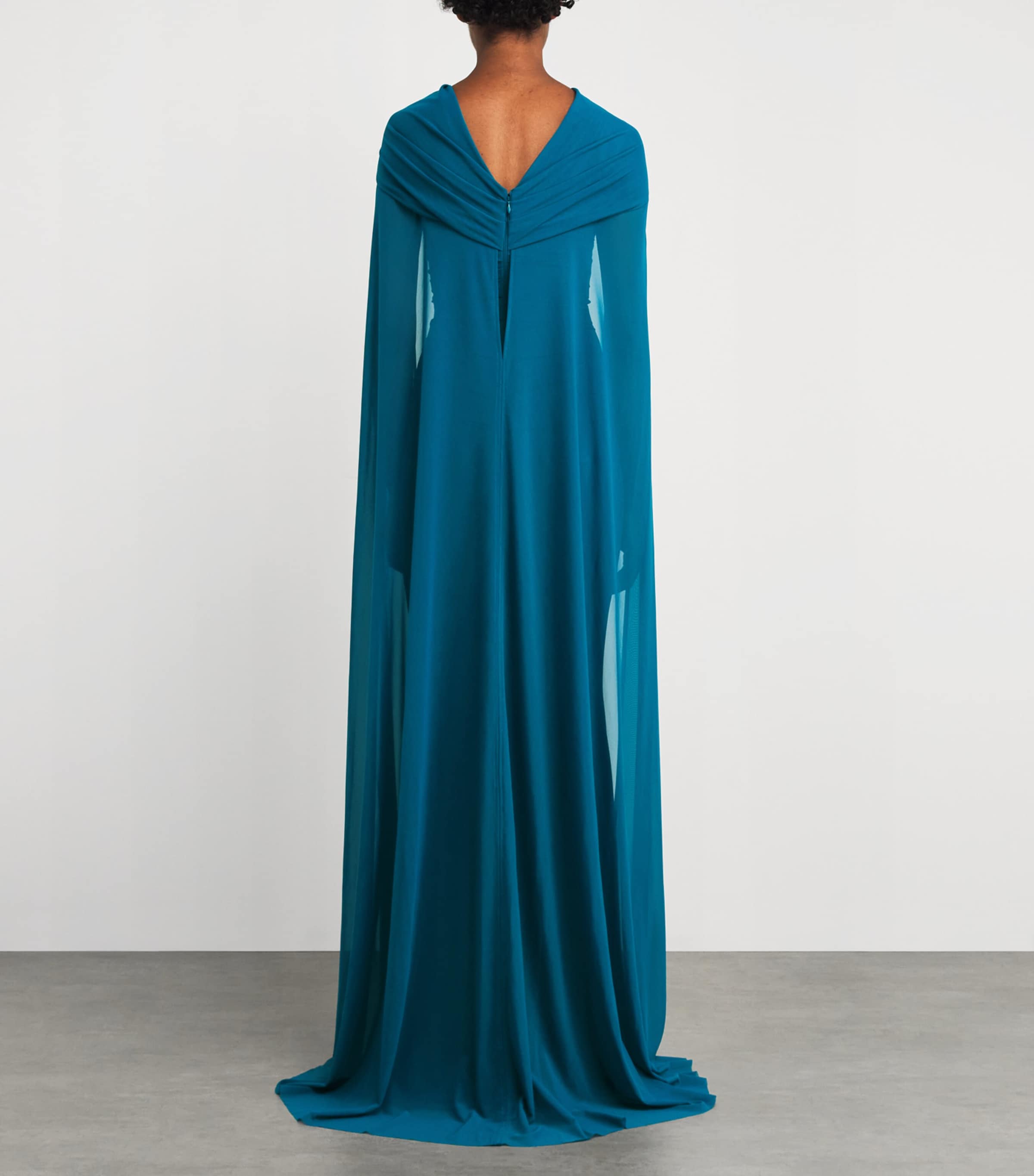 تؤمن تالبوت رونهوف بأن المناسبات الخاصة تُعدّ أيضًا فرصًا مثالية للتألق، وهي فلسفة راسخة. يحمل هذا الفستان هذه اللمسة الفريدة من نوعها بفضل تصميمه شبه الشفاف من التول المُحكم، والذي يكتمل بطبقة خارجية أنيقة من الكاب.
