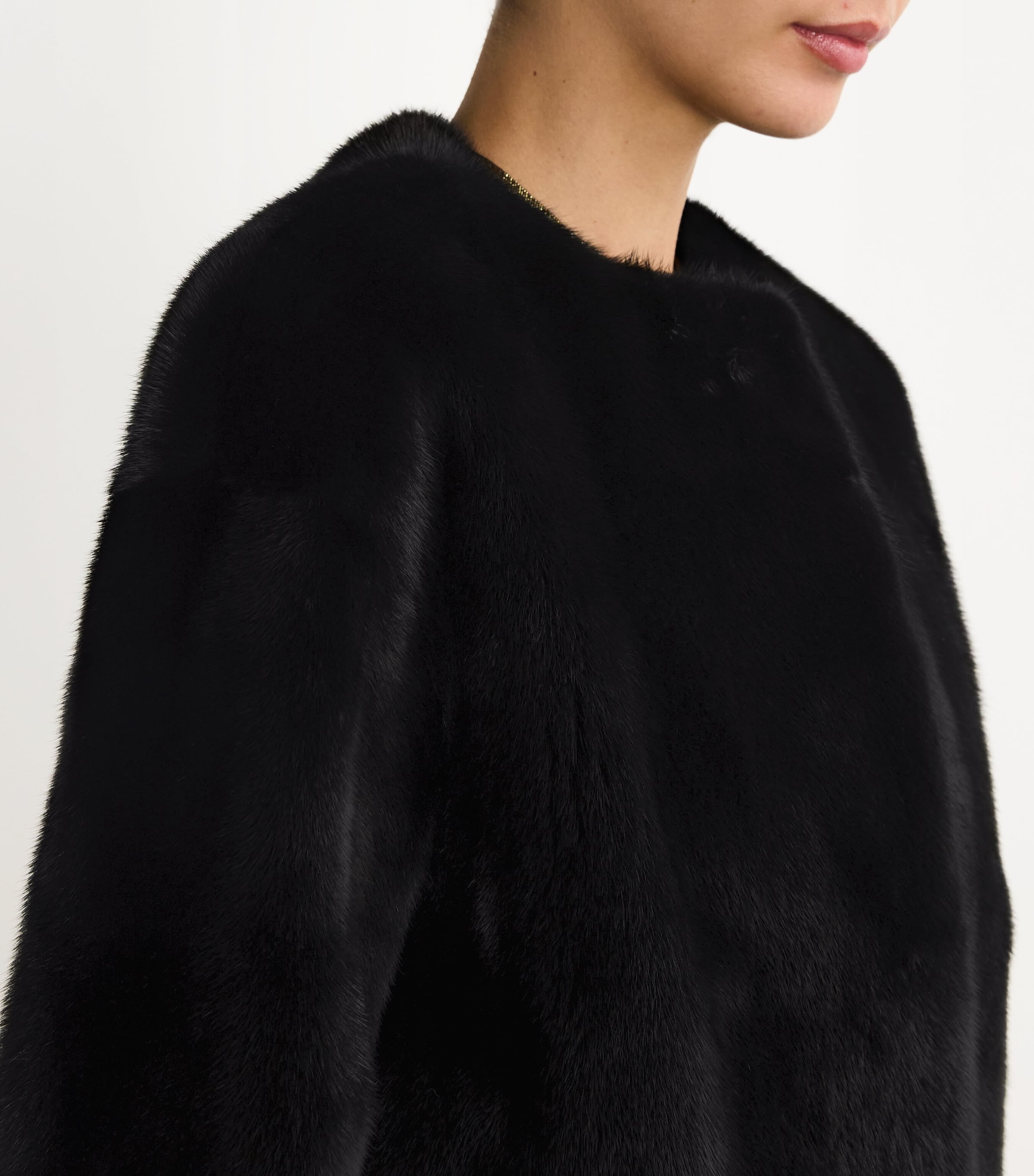 سترة من فرو المنك الأسود طويل الشعر من إيف سالومون
