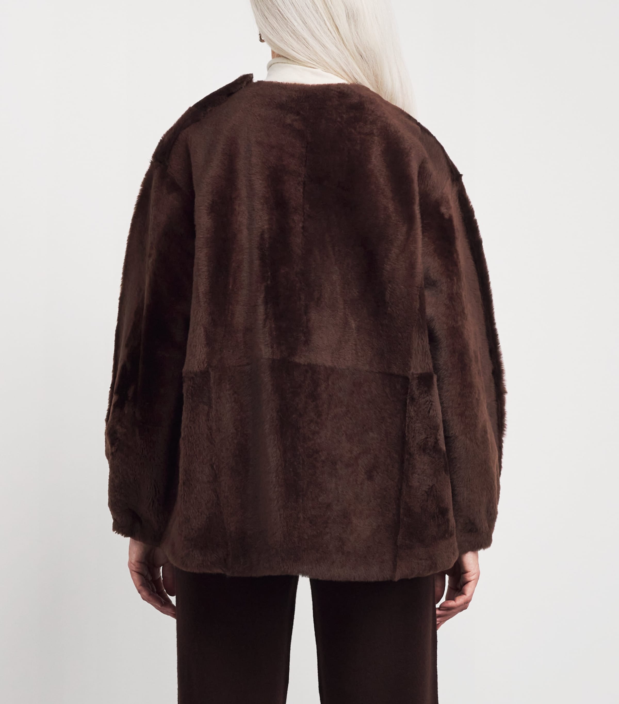 تصميم عصري مستوحى من جاكيتات الشيرلينغ الكلاسيكية، هذا التصميم الأحدث من إيف سالومون مصنوع من جلد الحملان الفاخر. يتميز هذا النوع من جلد الشيرلينغ بنعومته وخفة وزنه، ما يجعله القاعدة المثالية لهذه القطعة الأساسية التي لا تتكرر في أي موسم.