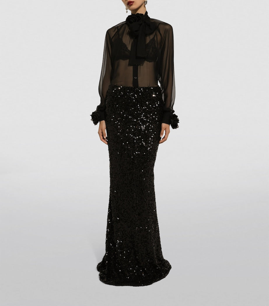 لا تتردد دولتشي آند غابانا في اعتماد الملابس الداخلية كملابس خارجية، لذا تقدم لكِ هذه البلوزة الحريرية المزينة بالزهور لمجموعتكِ الجديدة للموسم الجديد. ارتديها فوق ملابسكِ الداخلية المفضلة لإطلالة تُجسّد شغف الدار الإيطالية بالإثارة والجاذبية.
