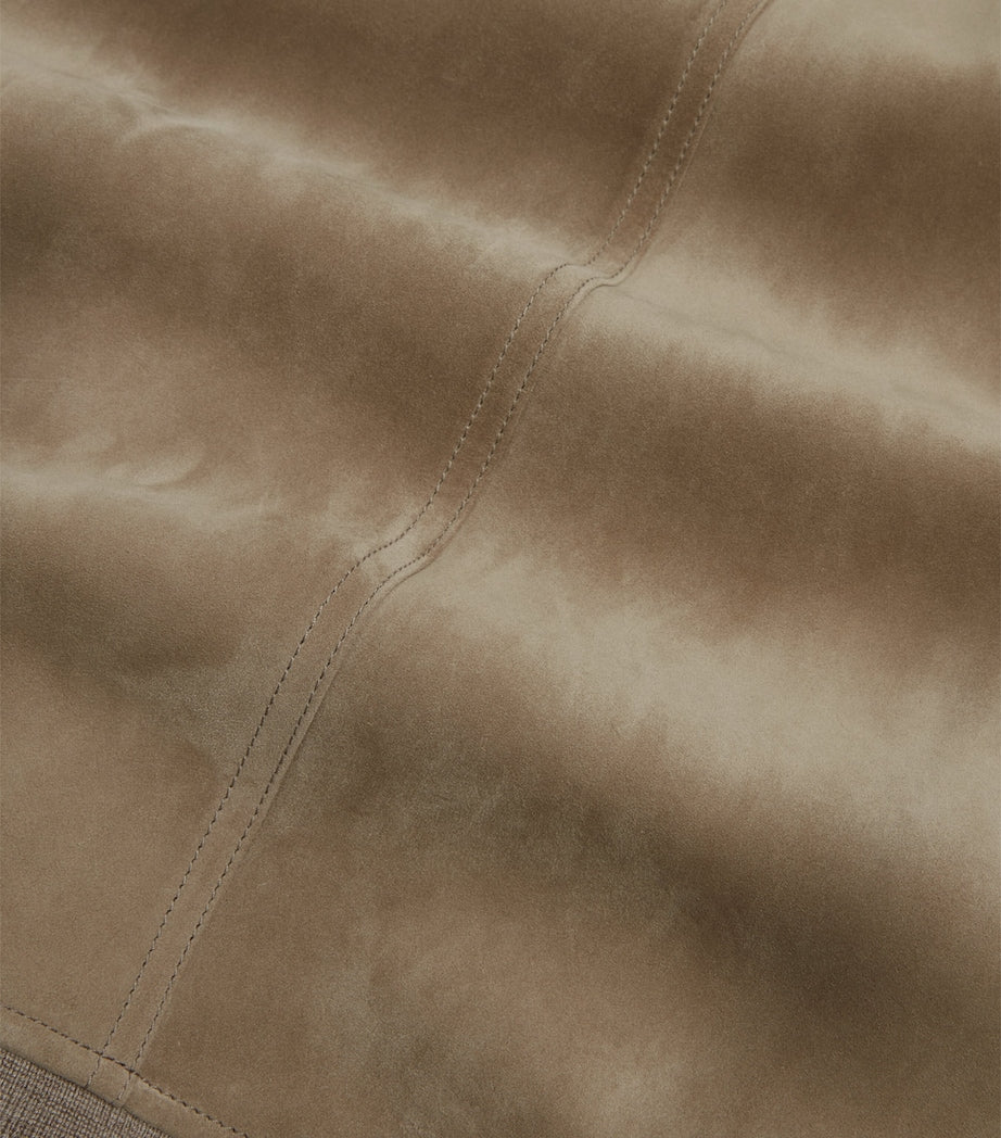 تؤكد سترة هارينغتون المصنوعة من جلد السويد على تراث Dunhill المزدوج في الخياطة والسيارات.
