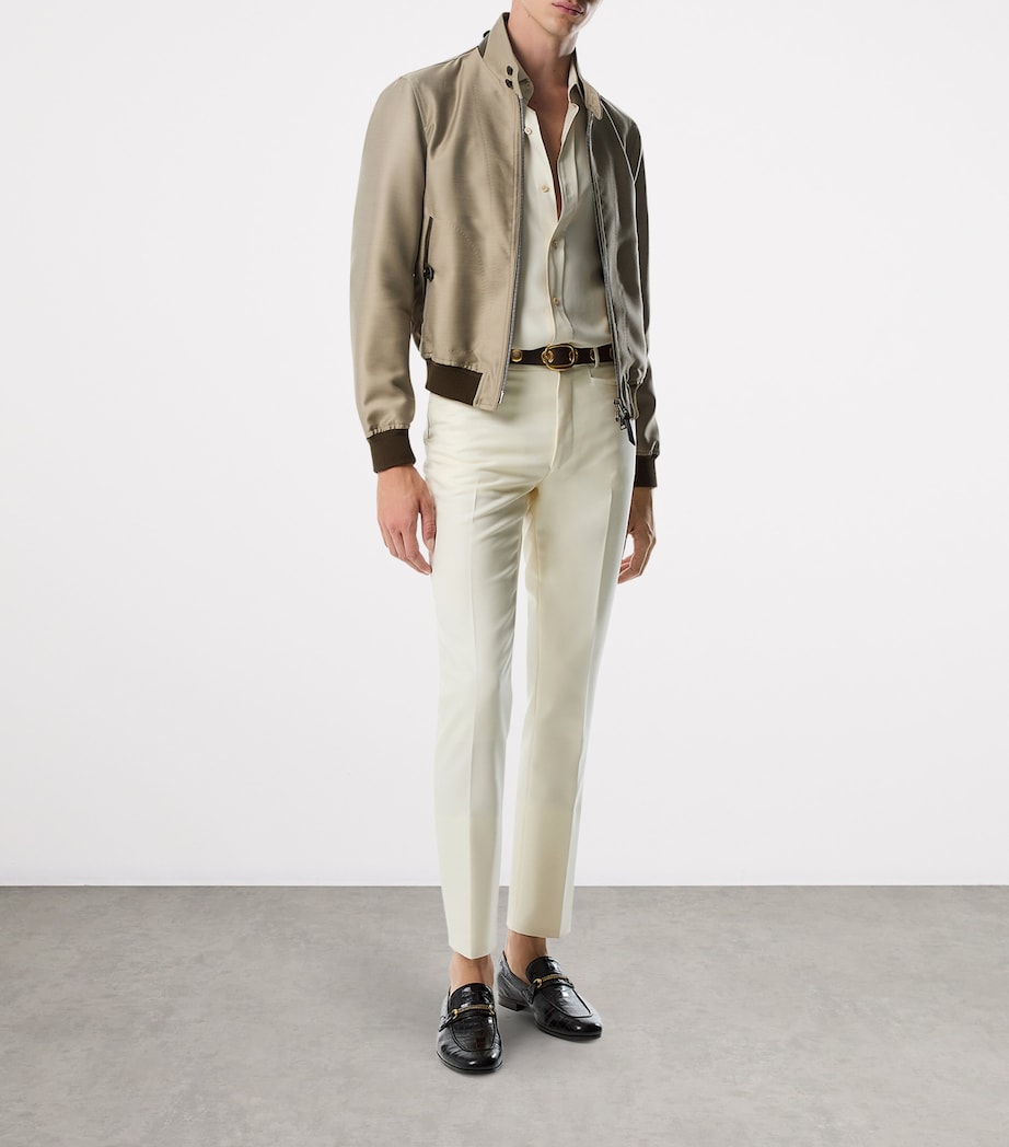 سترة هارينغتون من الصوف والموهير والحرير الأخضر