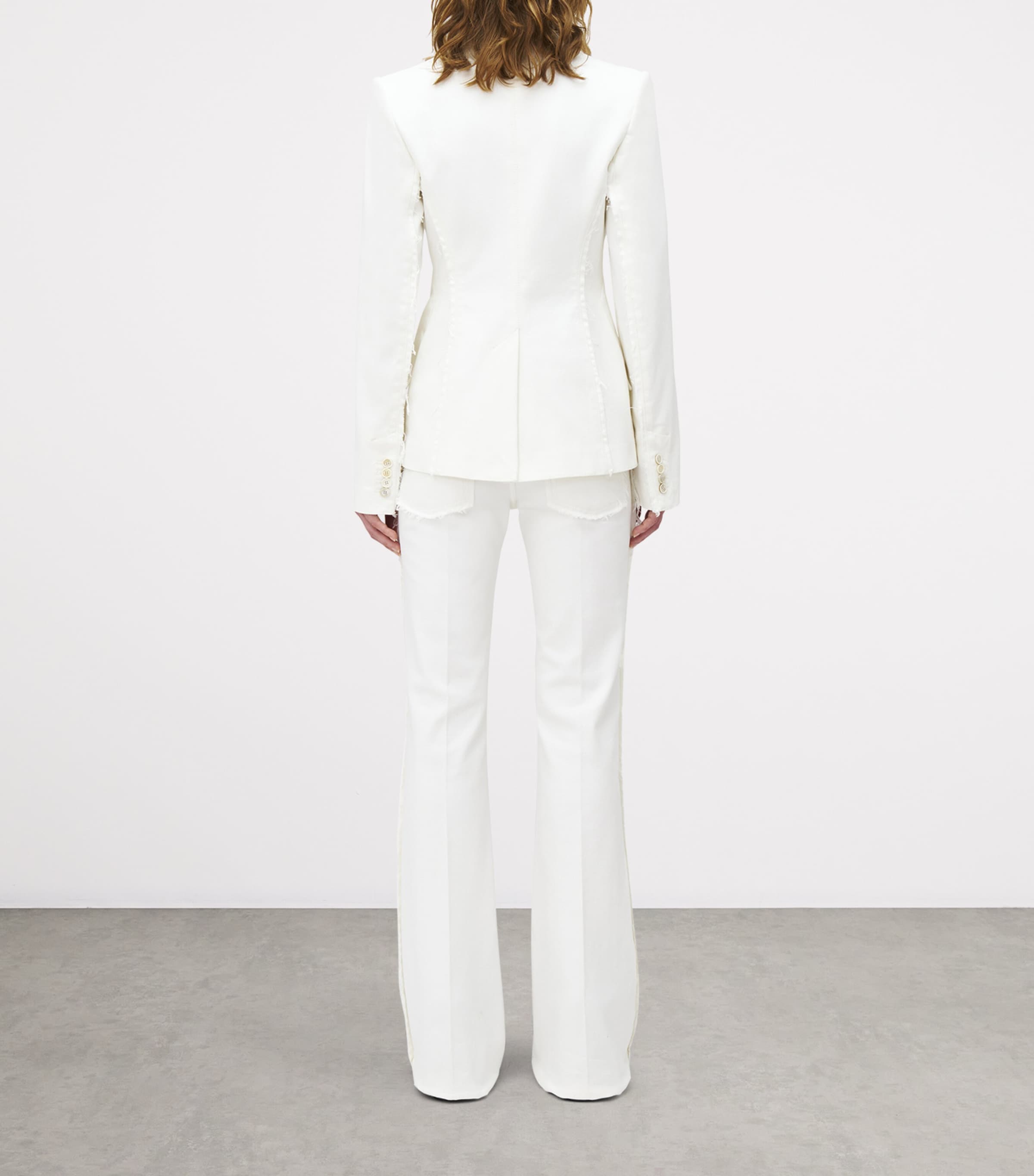 سترة ماكوين جينز بيضاء بصف أزرار واحد