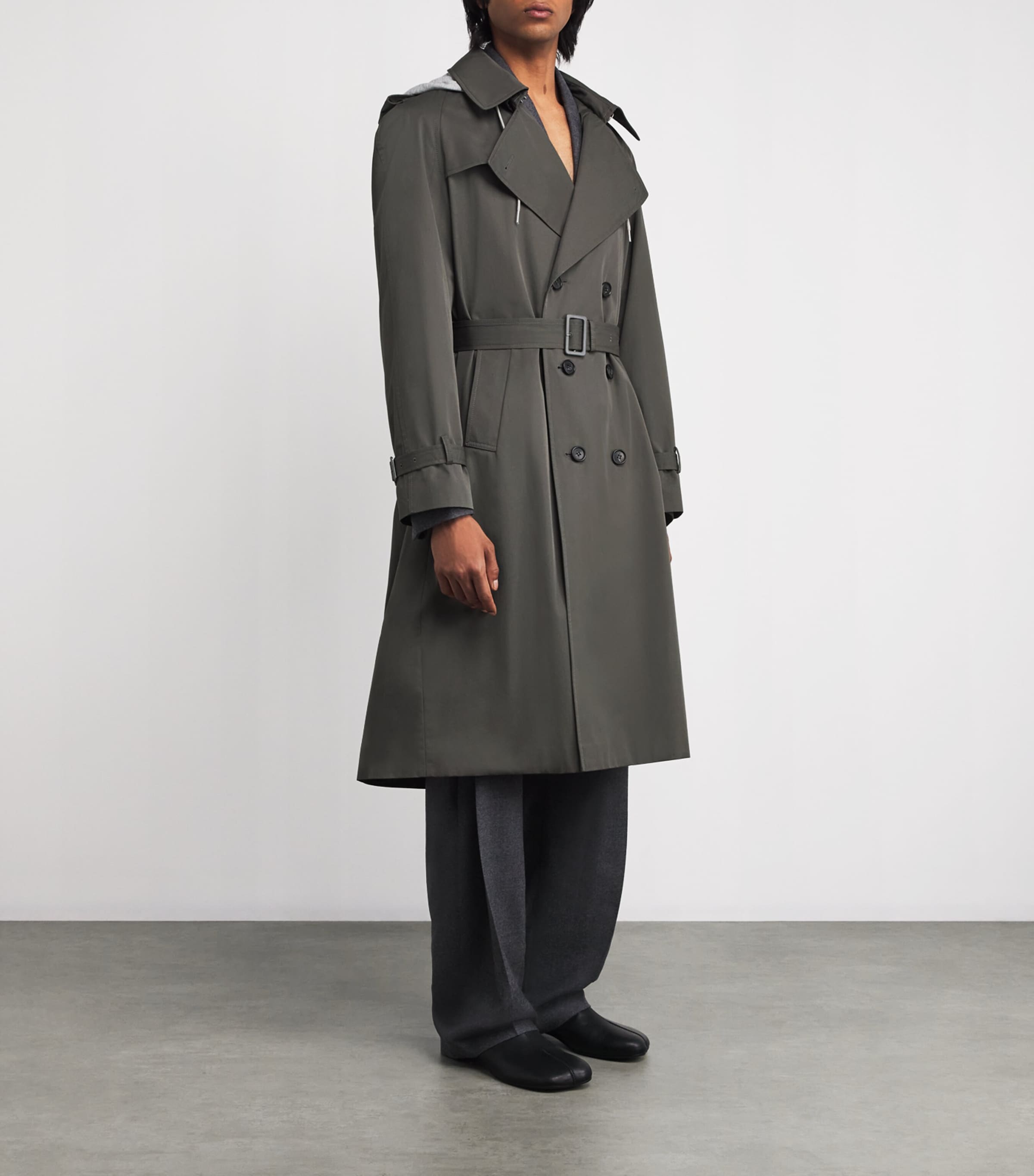 معطف ترنش رمادي من القطن بغطاء رأس من MM6 Maison Margiela
