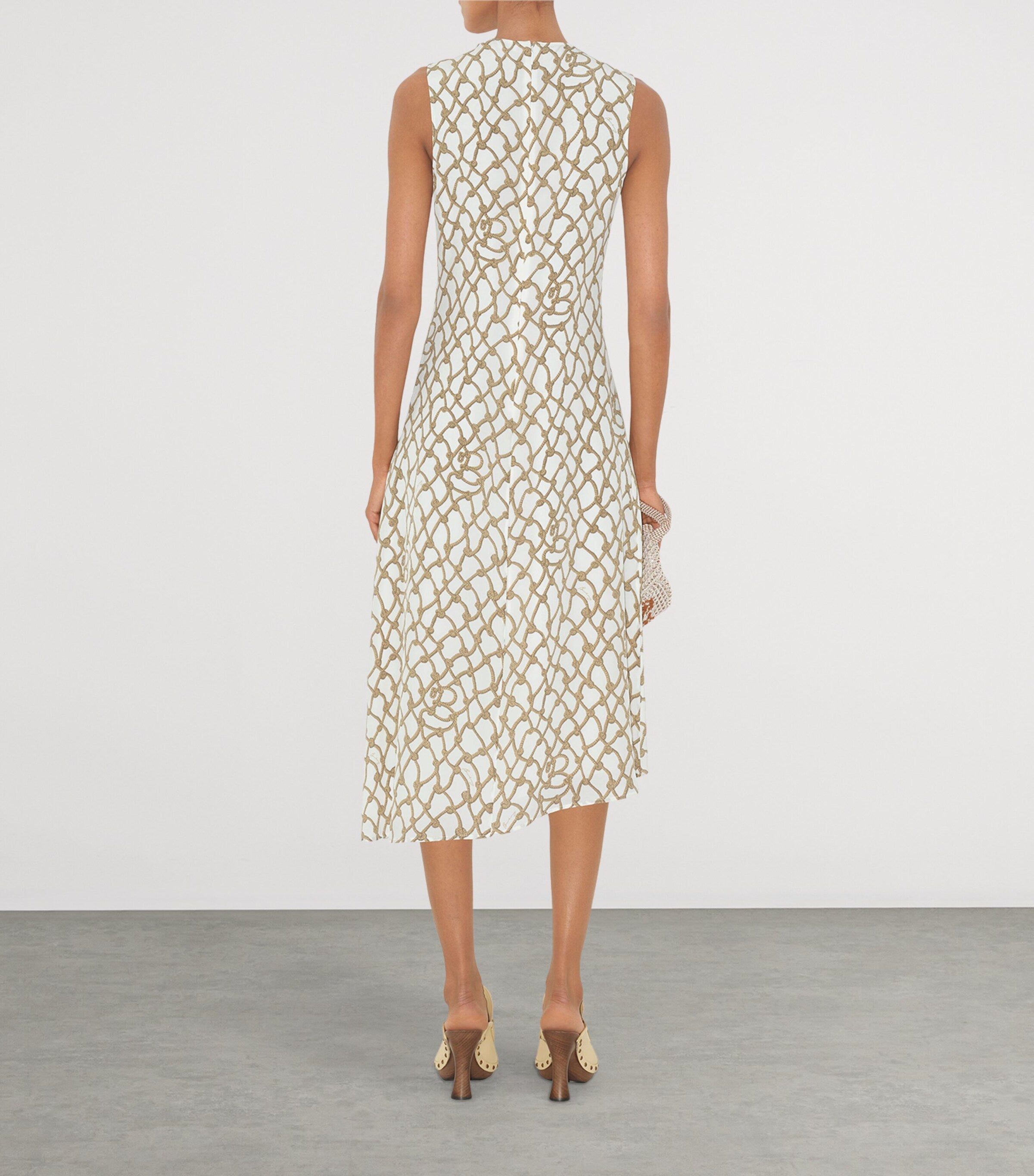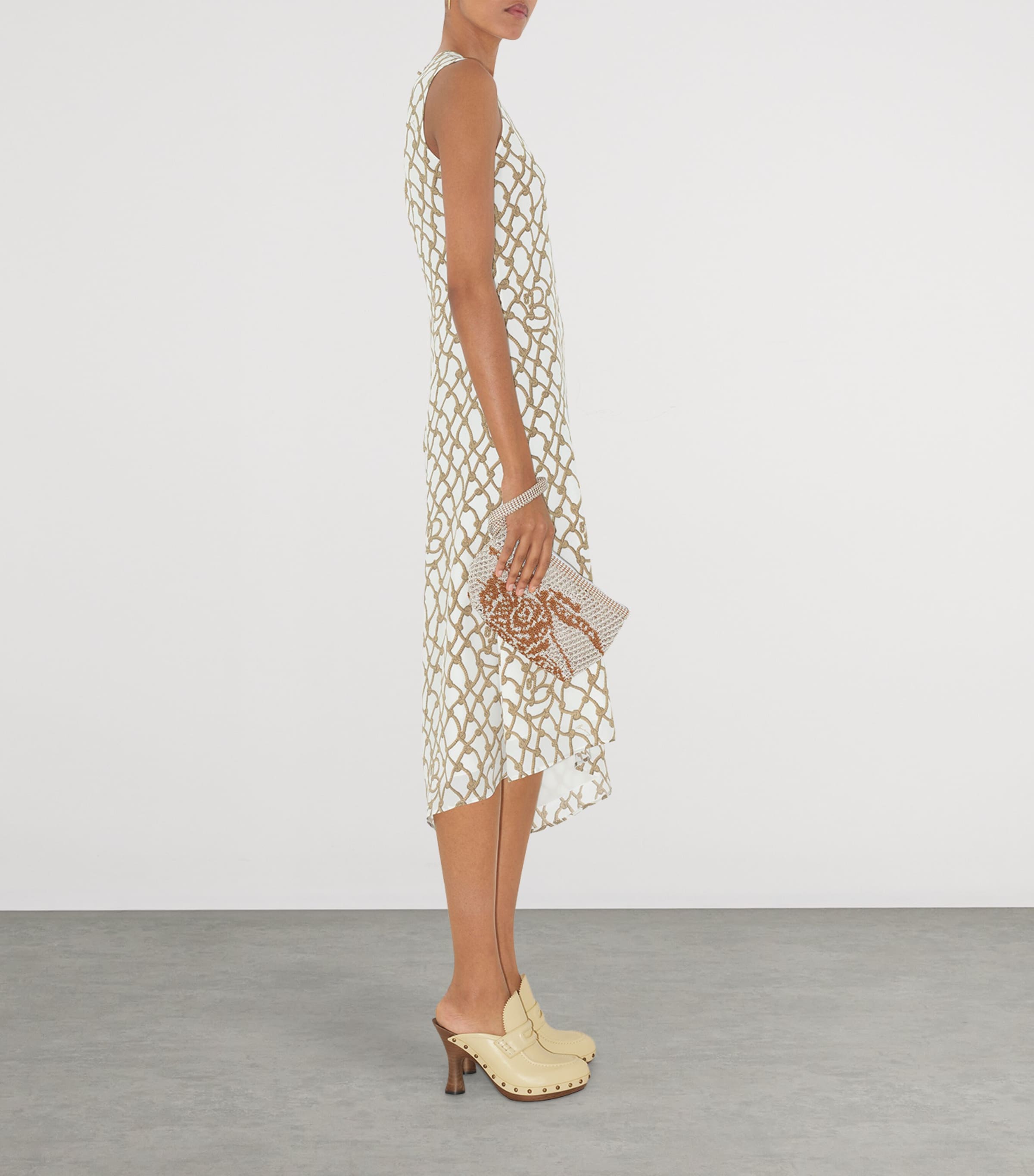 لطالما حرصت بربري على تكريم أصولها، حيث تتخذ هذا الفستان متوسط ​​الطول طابعًا بحريًا. صُنع في إيطاليا، ويتميز قماش الكريب دي شين الحريري لهذا الفستان بطبعة حبل معقودة تلتف بشكل معبر لتُجسّد شعار العلامة التجارية "B". يتميز هذا الفستان بحاشية غير متماثلة، مما يجعله خيارًا مثاليًا لإطلالاتكِ البحرية.