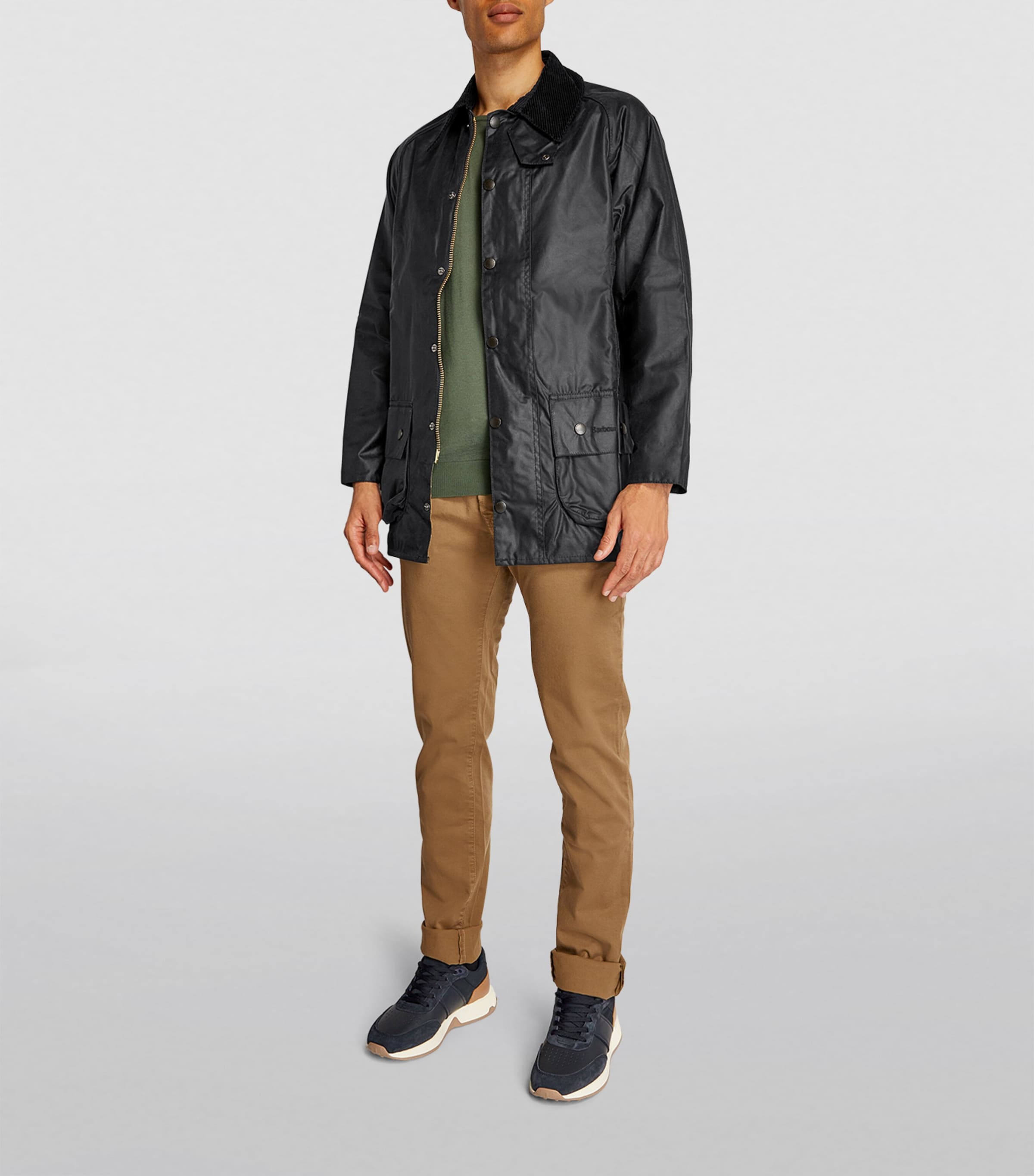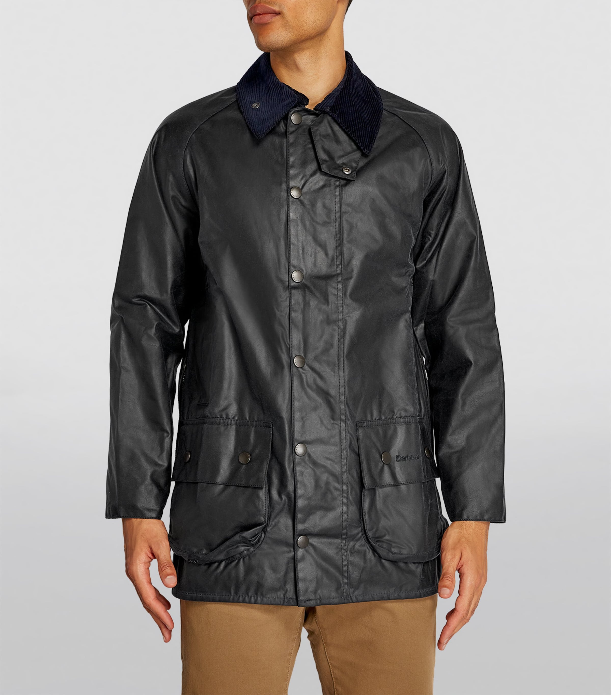 سترة بوفورت الخالدة من باربور، قطعة أنيقة تناسب المدينة والريف، تتميز بتفاصيل تراثية مميزة، تشمل ياقة مخملية وبطانة مربعات وشعار مطرز. تتميز بجيوب واسعة متعددة لراحة عملية، ويمكن تنسيقها بسلاسة مع قطع منفصلة أو جينز وحذاء طويل.