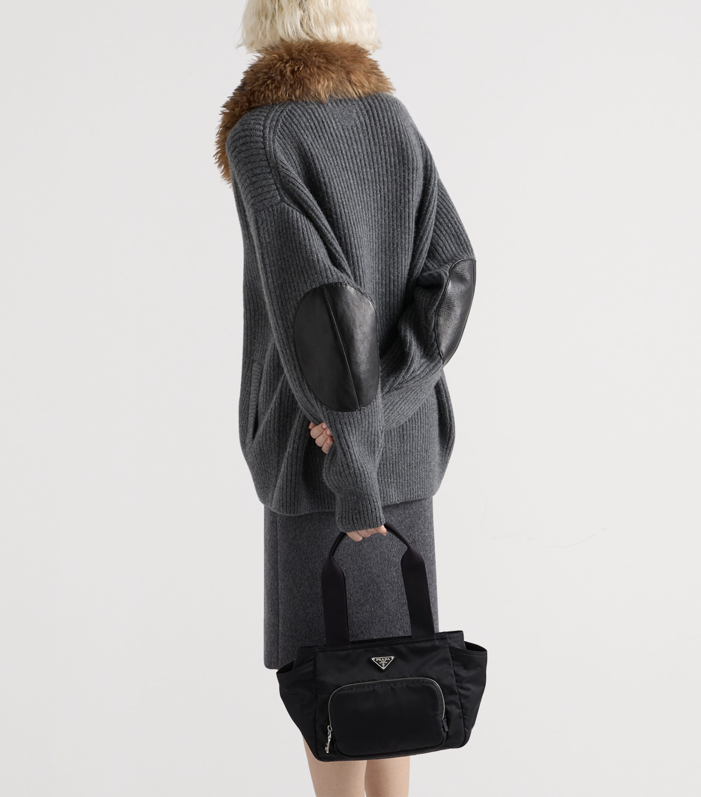 One of Prada’s most renowned House codes is its Re-Nylon material. Developed as part of the label’s mission to promote more sustainable practices, the regenerated fabric is crafted from discarded plastic found in oceans and recycled into the signature canvas used to create this capacious tote bag.