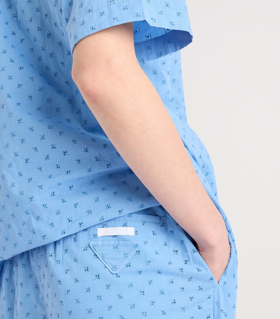 شورت برادا مطرز من قماش البوبلين القطني باللون الفيروزي