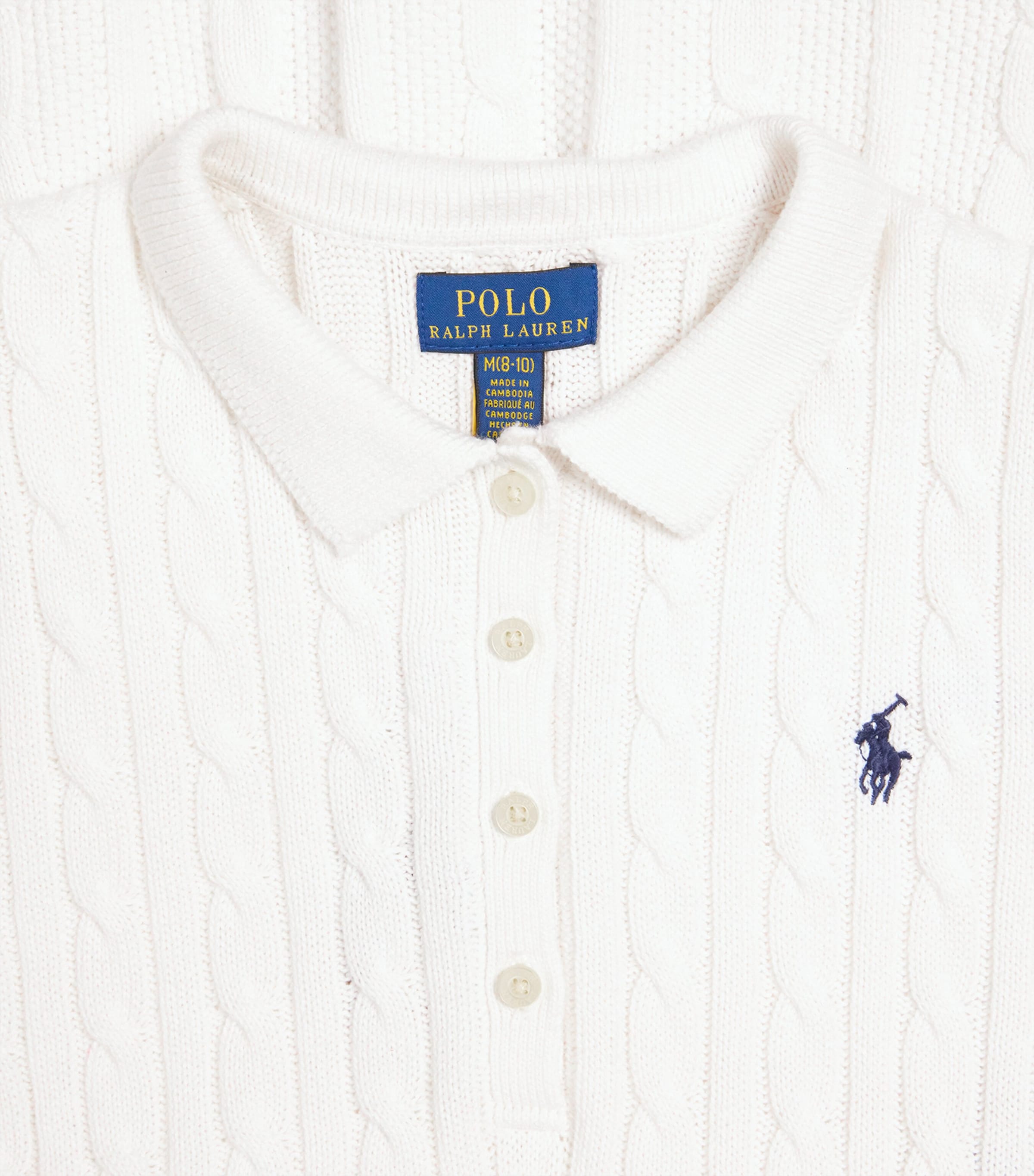 فستان رالف لورين للأطفال من القطن المحبوك بنمط الكابلات (7-14 سنة)